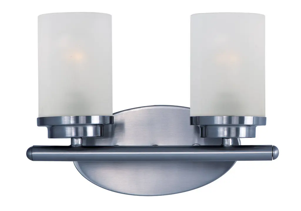 The Canfield two light vanity fixture in brushed nickel provides abundant light for your bath vanity, while adding a layer of today's style to your interior design. Behind every seemingly simple design lies unerring attention to restraint and obsessive attention to the tiniest details. The Canfield collection by draws on the modernist traditions of "less is more". Essential functional elements dictate the aesthetics, and clean lines prevail. Layers of intricately finished hand-brushed steel progress vertically to the soft glow of light diffused through finely etched glass diffusors. Canfield offers a "whole home" lighting solution; offering lighting in every imaginable category from the auspicious 15 light 3-tier chandelier, to the concise mini-pendant and one-light sconces. The collection is available in hand brushed Burnt Sienna for a warm, tactile, almost Craftsman design style, or a brushed nickel to emphasize the more architectural elements of your interior.