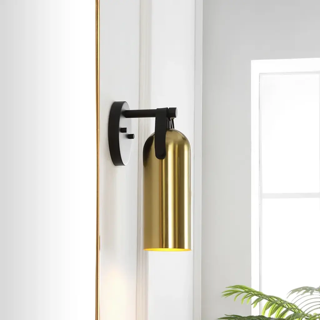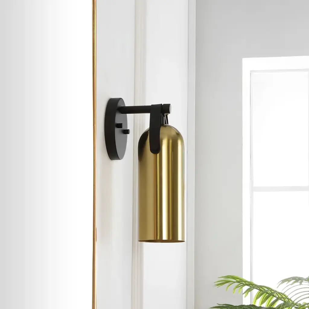 Add chic and modern lighting to your home with our stylish Anwick wall sconces. Showcasing a sleek profile and elegant details, our wall sconces lend a chic and fashionable edge to any room. Its sleek cylindrical shades hang from leather straps to make a stunning statement. Featuring a gold metallic finish and black accents, our wall sconces lend sophisticated drama to a variety of styles and decor. Its metallic shades diffuse light vertically to create a soft, focused glow in your bedroom, home office, or living space.