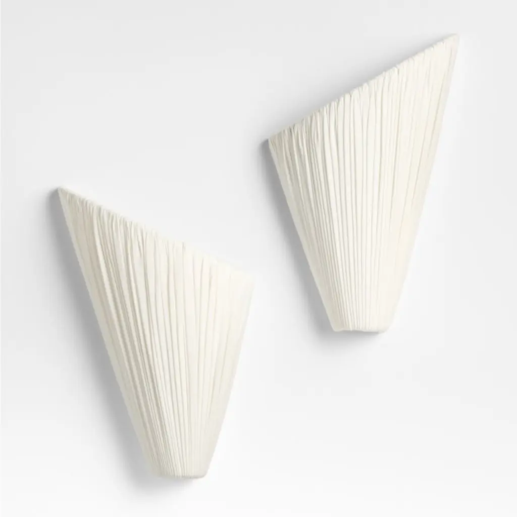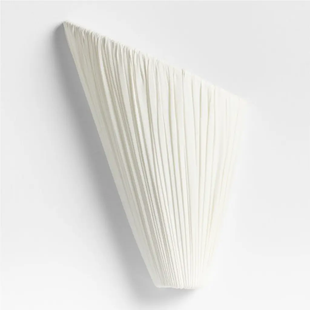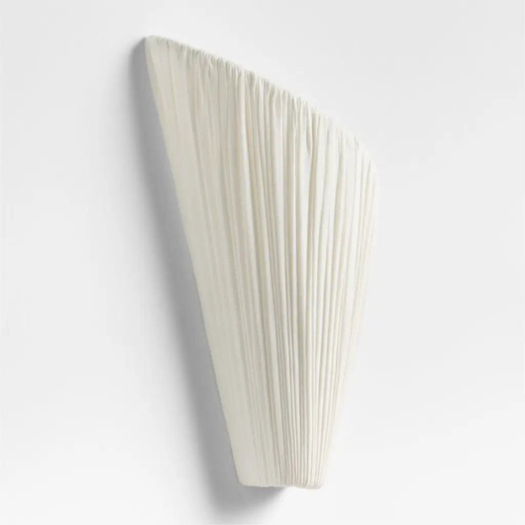 Inspired by the rippled metal pieces he designed for his exclusive Crate & Barrel collection, Jeremiah Brent reimagined that flowing motif in fabric. Talented artisans gather ivory linen over a swooping cone-shaped metal frame, creating a sconce that reminds us of seashells or couture pleating. Ideal for flanking a painting, lining a hallway or illuminating a stairway landing, Cannato washes walls with a soft glow.Introducing The Collected Home. Our exclusive new collaboration with interior designer Jeremiah Brent is rich with bespoke details and bold individuality.