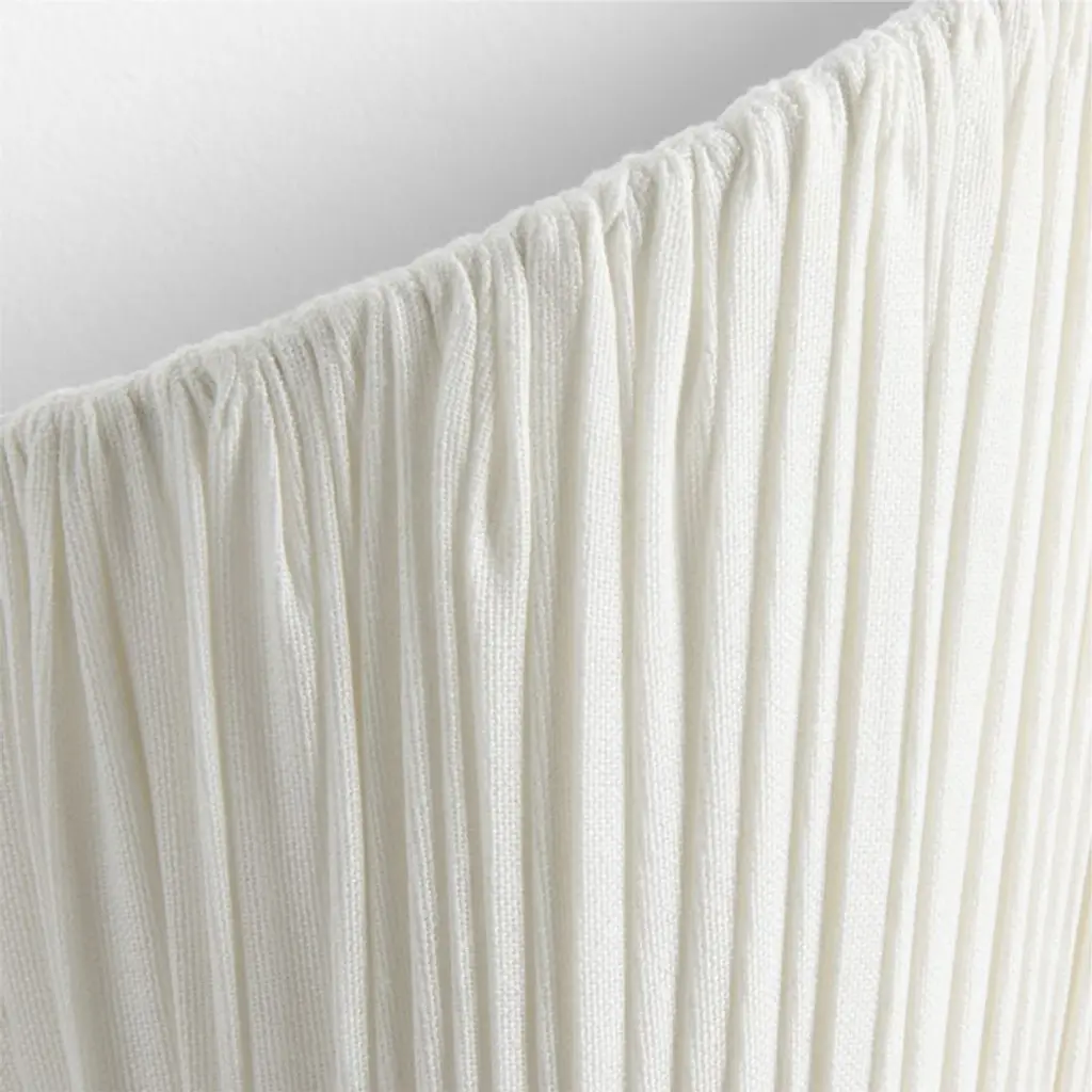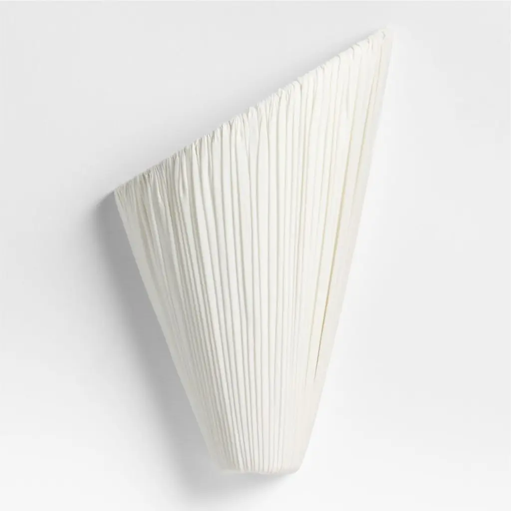 Inspired by the rippled metal pieces he designed for his exclusive Crate & Barrel collection, Jeremiah Brent reimagined that flowing motif in fabric. Talented artisans gather ivory linen over a swooping cone-shaped metal frame, creating a sconce that reminds us of seashells or couture pleating. Ideal for flanking a painting, lining a hallway or illuminating a stairway landing, Cannato washes walls with a soft glow.Introducing The Collected Home. Our exclusive new collaboration with interior designer Jeremiah Brent is rich with bespoke details and bold individuality.