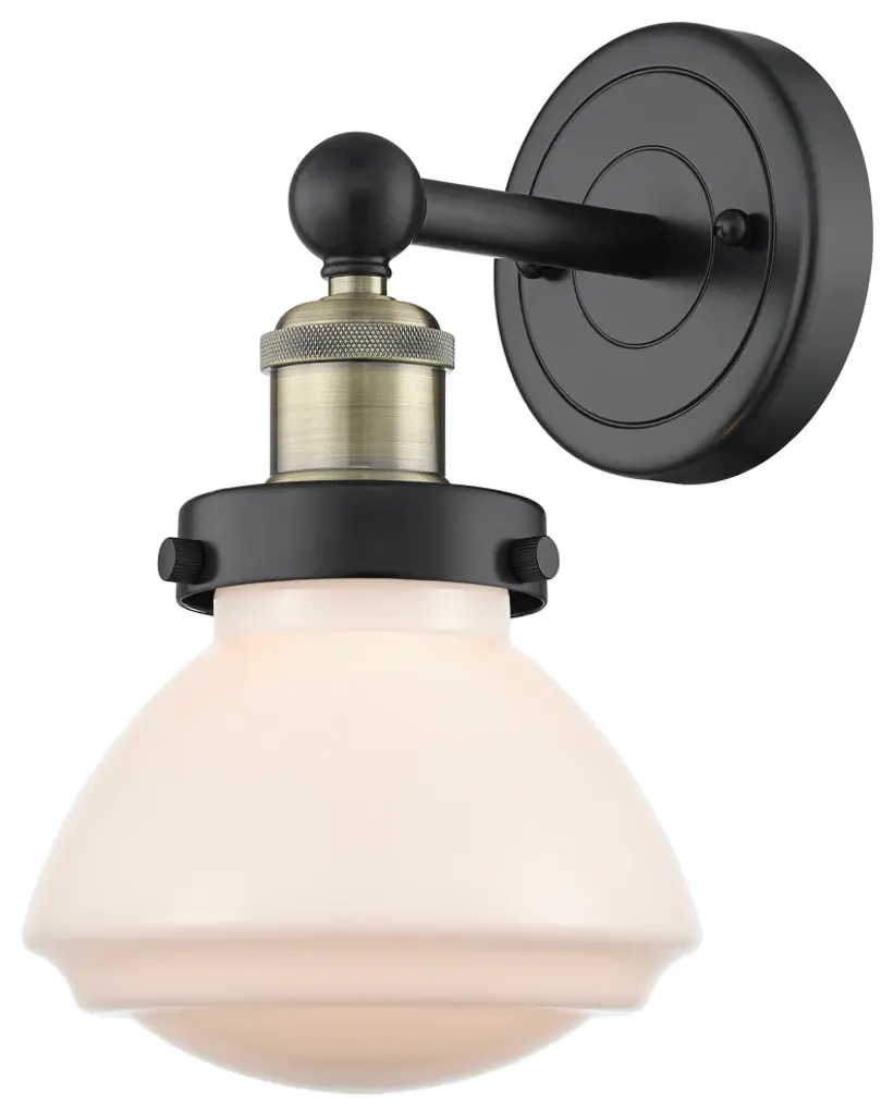 Canton 1-Light 6" Sconce, Black Antique Brass Finish, Matte White Shade