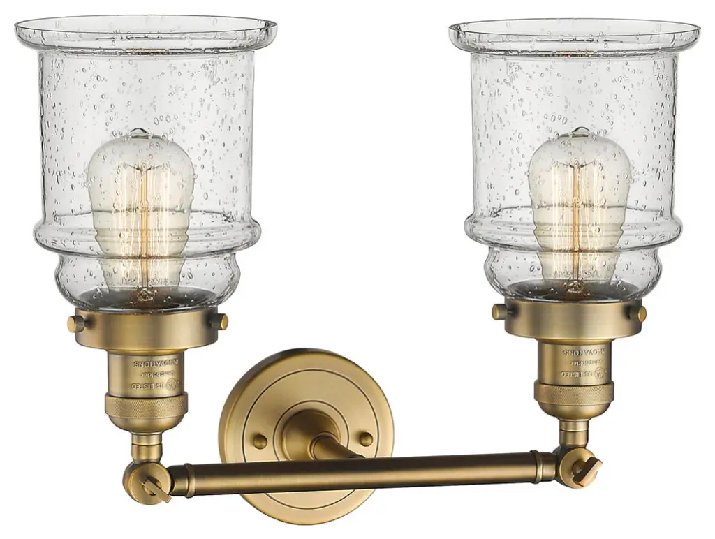 One of our largest and original collections, the Franklin Restoration is made up of a vast selection of heavy metal finishes and a large array of metal and glass shades that bring a touch of industrial into your home.Features:Solid brass 180 degree adjustable swivels with internal teeth that lock in at 5 degree intervalsFixture can be hung with bulbs facing up or down as a wall mount4.5 inch 2mm heavy cast backplateRated for 100 watt maximum per socketUL/CUL and ETL/CETL damp ratedCompatible with incandescent, LED, fluorescent and halogen bulbsNumber of Bulbs: 2Bulb Wattage: 60Bulb Type: IncandescentBulb Included: NoVoltage: 120Finish: Antique Copper Finish Shade Finish: Seedy Shade.