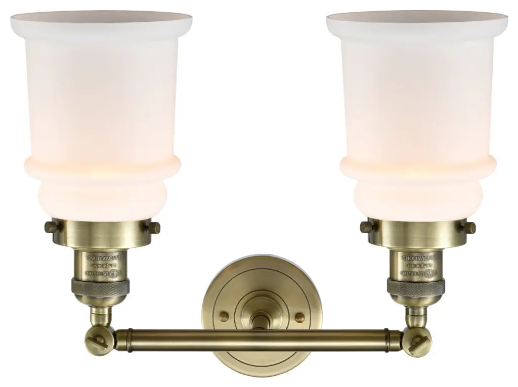 Canton 2-Light Bath Vanity-Light, Antique Brass, Matte White