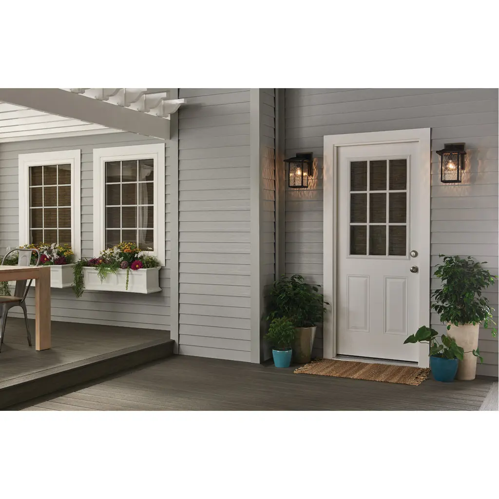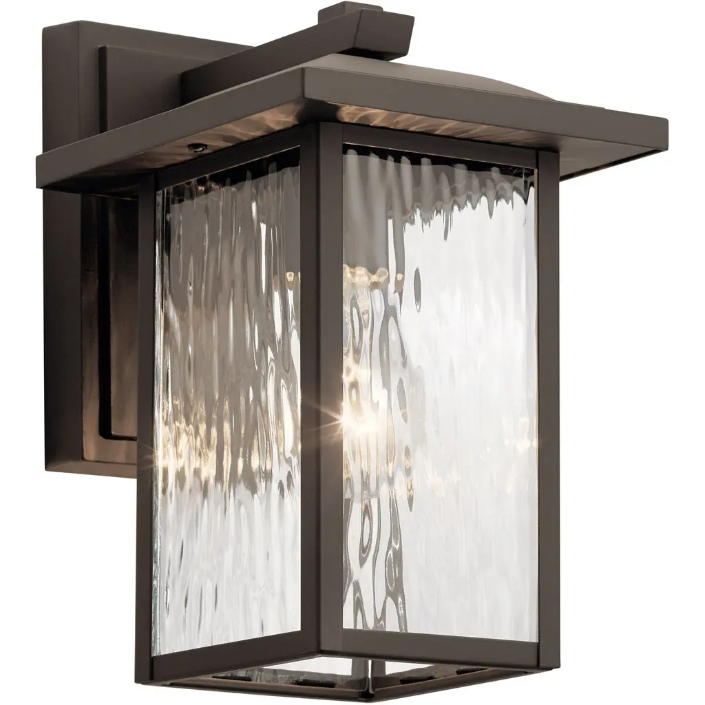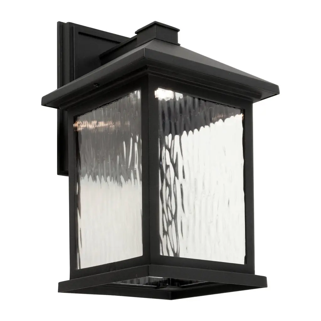 The 13.25in. 1-light outdoor wall light from the Capanna(TM) collection gives the classic lantern light a linear update. A textured black finish and squared edges, including a capstone finial, combine with artful waterfall glass to create a style that works on homes with modern, transitional or arts & crafts architecture.