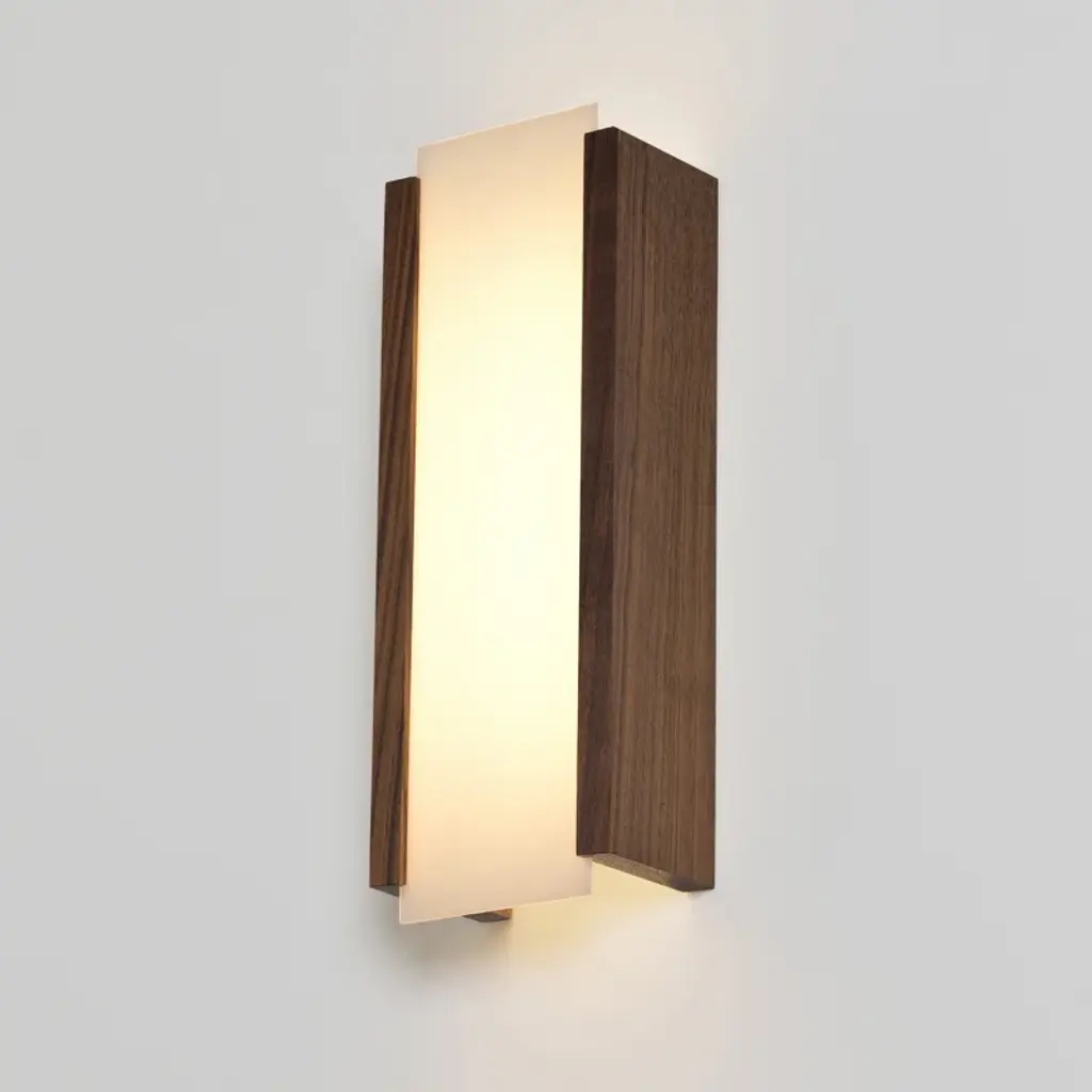 The Cerno Capio LED Wall Sconce is a humble expression of simplicity, featuring three rectangular planes of wood and diffused light. The frosted polymer face sits between two pieces of solid wood, allowing the warm light to shine forward while also creating indirect up and down light against the wall (or side to side if installed horizontally). The versatile installation and dimming capability makes the Capio a nice addition to interiors as a sconce lining a hallway, or even as a horizontal bath bar.