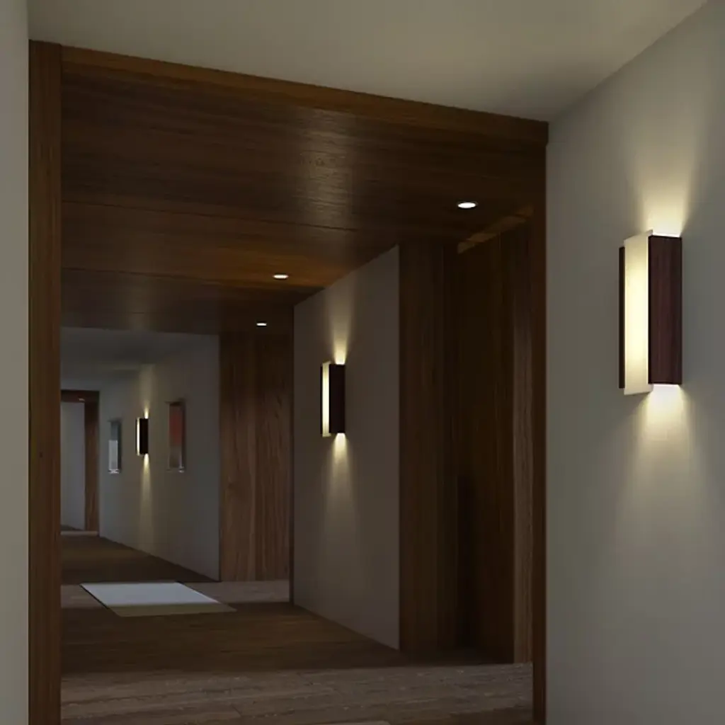 The Cerno Capio LED Wall Sconce is a humble expression of simplicity, featuring three rectangular planes of wood and diffused light. The frosted polymer face sits between two pieces of solid wood, allowing the warm light to shine forward while also creating indirect up and down light against the wall (or side to side if installed horizontally). The versatile installation and dimming capability makes the Capio a nice addition to interiors as a sconce lining a hallway, or even as a horizontal bath bar.