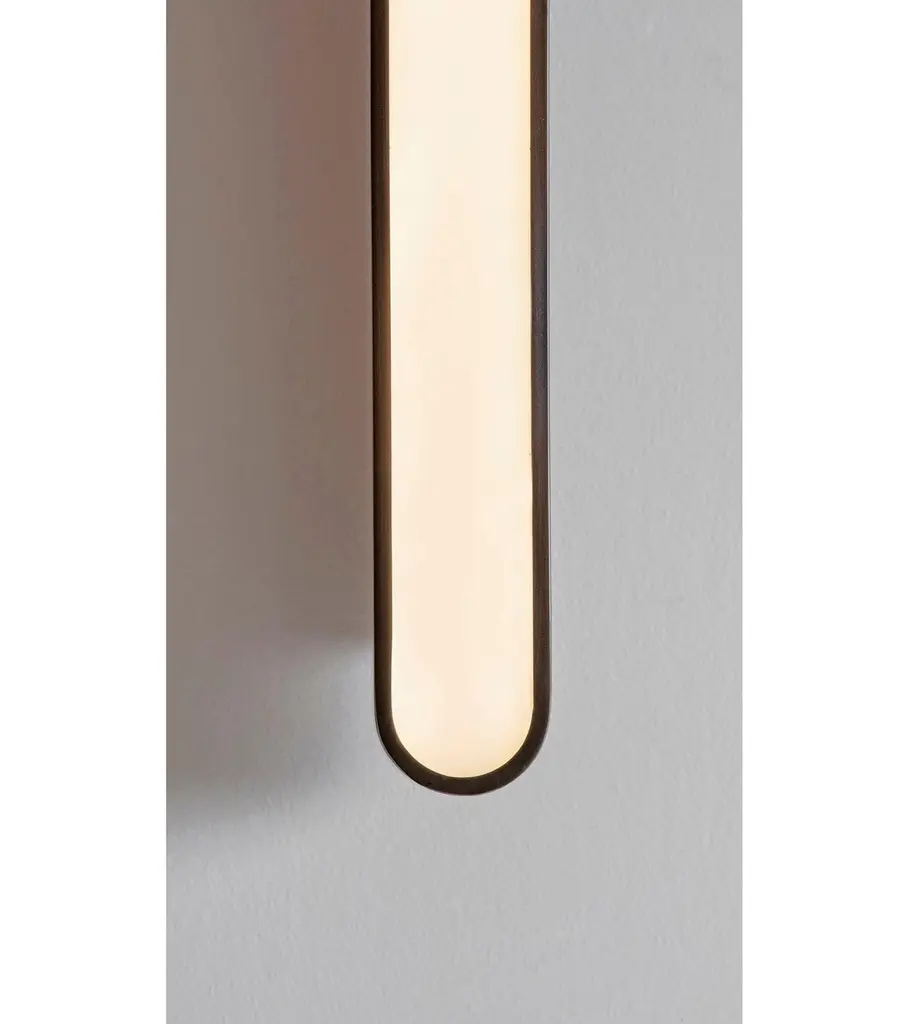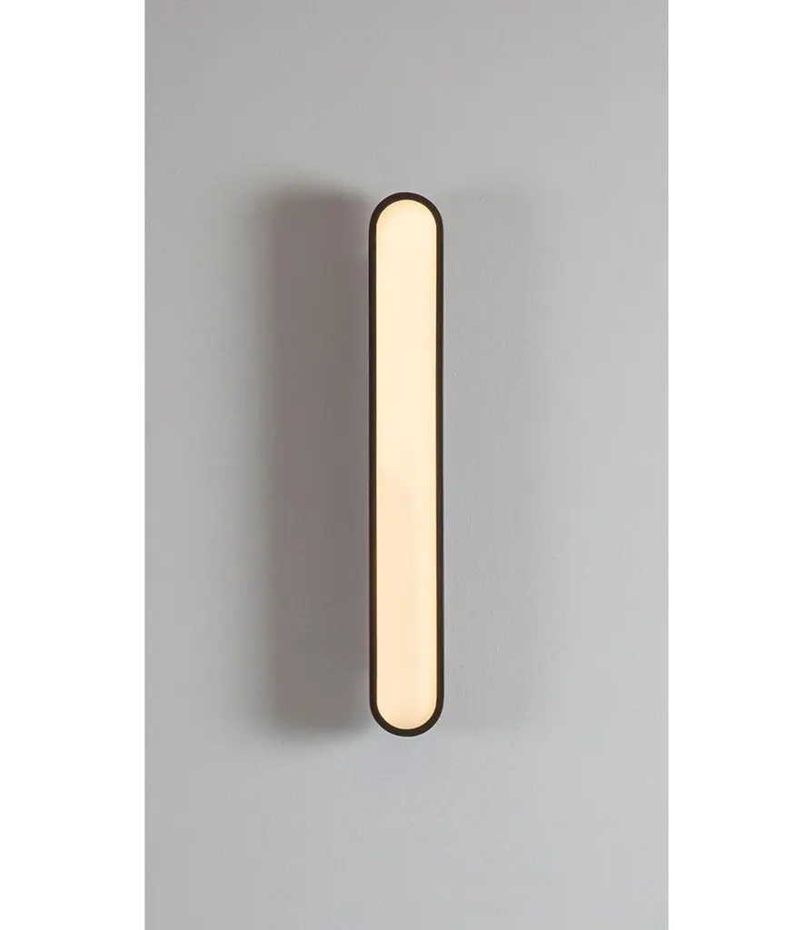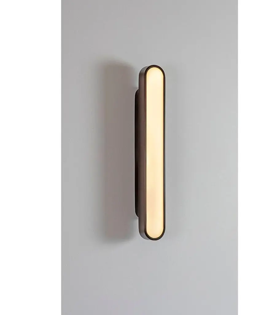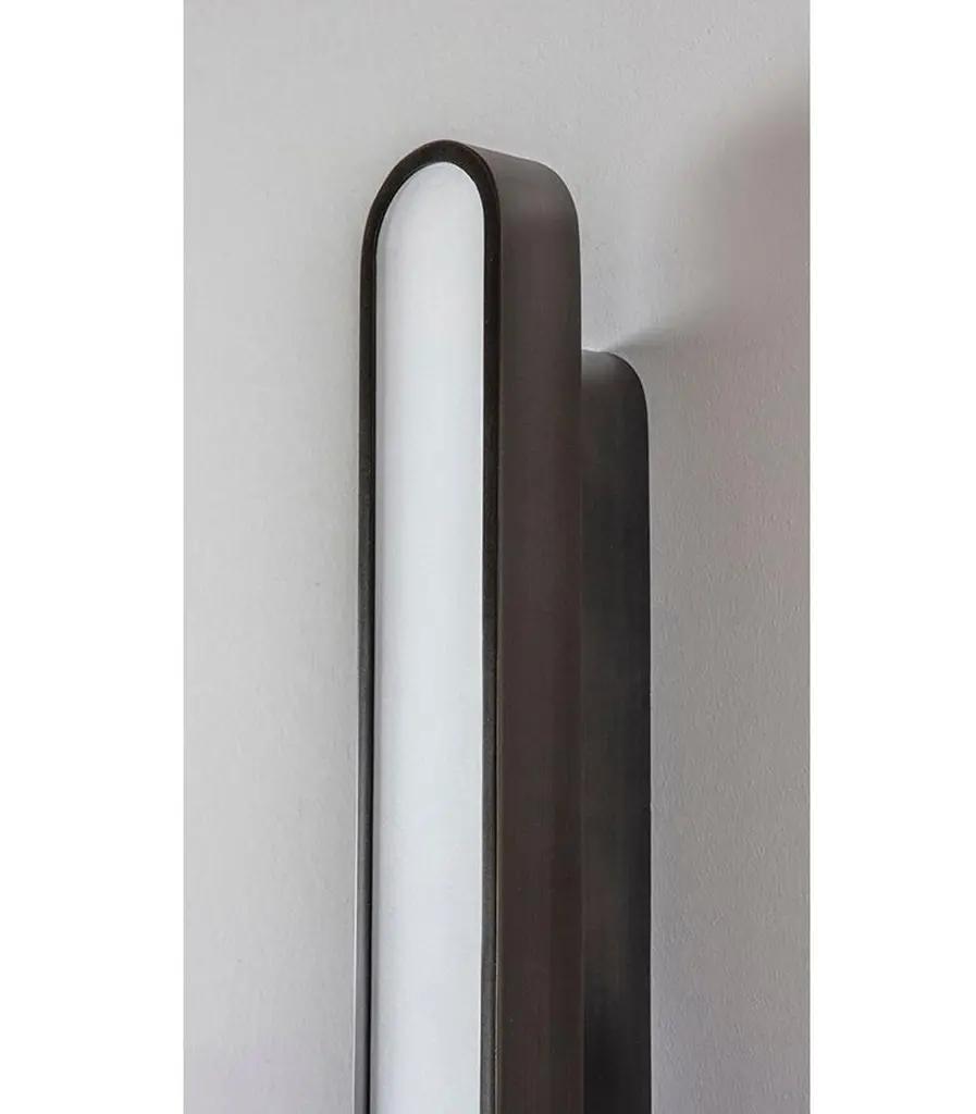 Capsule black wall light by Square in CircleDimensions: D 5 x W 5.5 x H 40 cmMaterials:Brushed brass/ opaque glassOther finishes available.Perfect rounded rectangular shape wall light. Metal wall light is neatly fixed with the same shape backplate to the wall. Shown in dark brushed bronze and brushed brass finish with opaque glass diffuser.Square in circle is a London-based design studio founded in 2019. The studio explores lighting design in minimal, geometric forms inspired by the Modernist Era. Materials such as marble, metal and glass combine to make each sculptural piece a 'total and complete work of art', as in the manner of Gesamtkunstwerk.All our lamps can be wired according to each country. If sold to the USA it will be wired for the USA for instance.