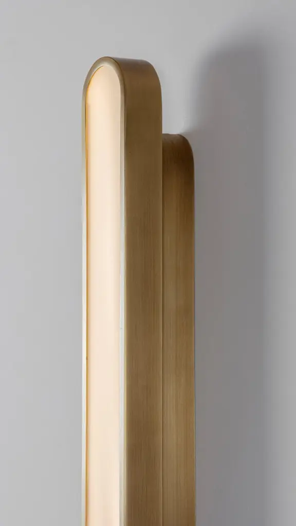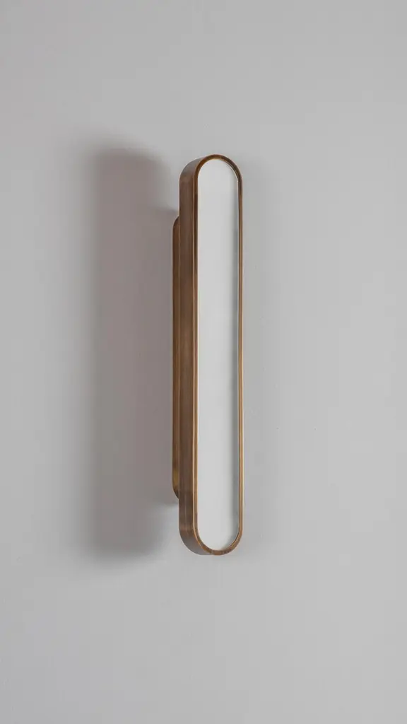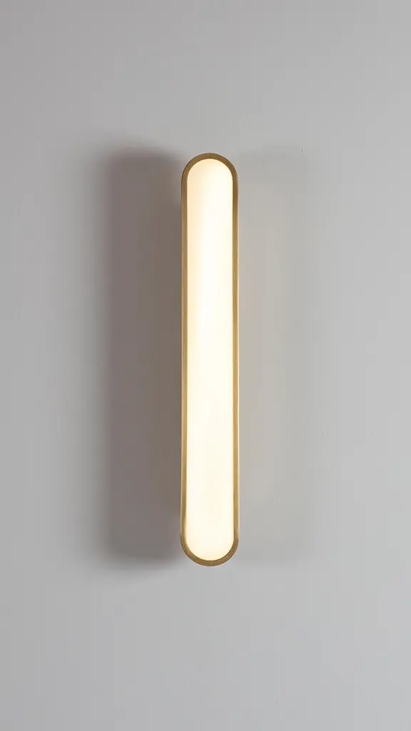 Capsule Golden wall light by Square in CircleDimensions: D5 x W5.5 x H40 cmMaterials:Brushed brass/ opaque glassOther finishes available.Perfect rounded rectangular shape wall light. Metal wall light is neatly fixed with the same shape backplate to the wall. Shown in dark brushed bronze and brushed brass finish with opaque glass diffuser.Square in circle is a London-based design studio founded in 2019. The studio explores lighting design in minimal, geometric forms inspired by the Modernist Era. Materials such as marble, metal and glass combine to make each sculptural piece a 'total and complete work of art', as in the manner of Gesamtkunstwerk.All our lamps can be wired according to each country. If sold to the USA it will be wired for the USA for instance.
