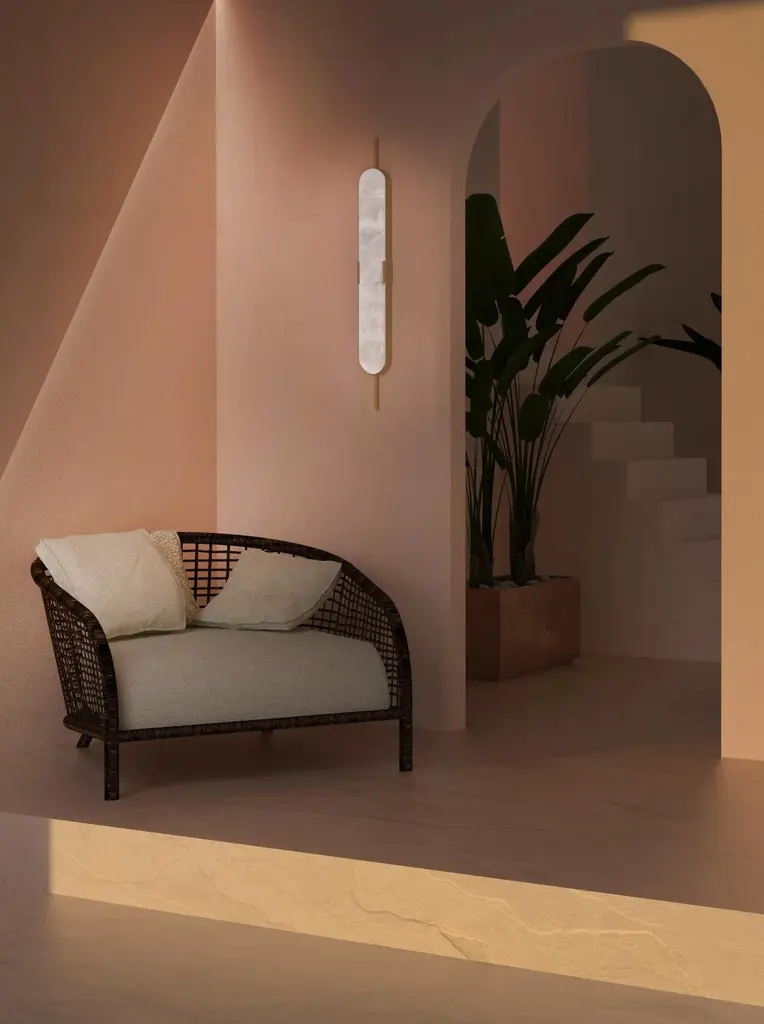 Capsule wall lamp by Stefania LoschiDimensions: D x W x H cmMaterials: brass, marbleWall lamp designed by Stefania LoschiStefania Loschi was born in Jordan in 1984 from an Italian-Brazilian family that made her travel the world, live in different cultures and grow up in highly creative environements.After graduating in Interior Design at the IED in Milan in 2006, she moved to London to attend a master's degree in set design at the Central Saint Martin College of Art, collaborating with MTV UK and Next London, creating sets for television shows and photo shoots.For the following ten years she worked as an interior & set designer and decorator, mixing her passion for architecture, art and graphics until 2013 when she moved to Paris.In Paris she lived in the 6th arrondissement for almost five years, working on interior design projects for restaurants, shops and private apartments.She was the co-founder of OCRA STUDIO with Isabella Garbagnati.It was a design studio based in Milano which realized a collection of lamps and tables, "Odeon Collection" in exclusivity for Dimore Gallery They have been selected among the 50 top designers of 2021 by MarieClaire Maison Italia.Her love for details have pushed her towards the world of craftsmanship where the uniqueness and the attention to details are extremely important.Hence the idea of ??creating ceramics. In 2020 Stefania launched her first collection of vases, Origo, at 1000 Vases at Galerie Joseph, in Paris. In September 2021 the collection has been also published in the first book "1000 vases". Stefania's ceramics have been also selected by Mint Shop to be part of its permanent collection.