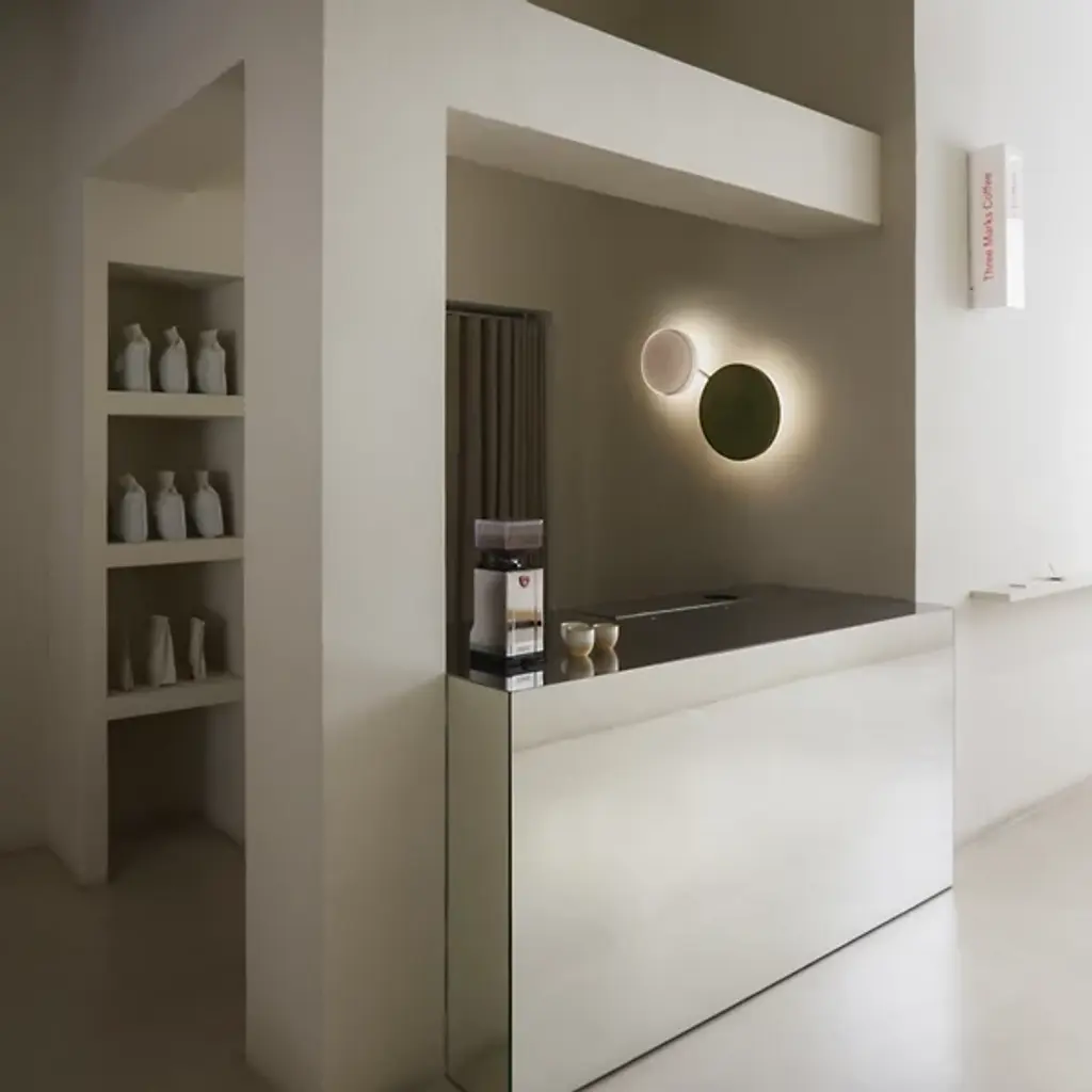 The Caramel 2-Light LED Wall Sconce from Marset blends illumination with artistry, offering a pair of lights crafted from decorative translucent glass attached to a gold finished frame. Designed by Joan Gaspar, it forms a striking graphic element when unlit. When lit, a soft, warm glow reflects off the walls and highlights the glossy beauty of the circular coverings. It can work independently or with others, arranged in compositions that mix sizes and colors for a strong artistic impact.