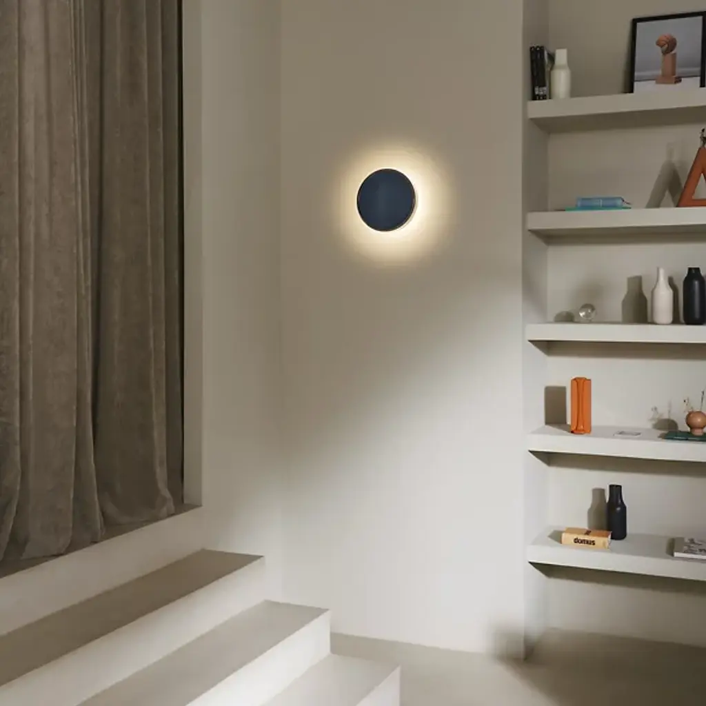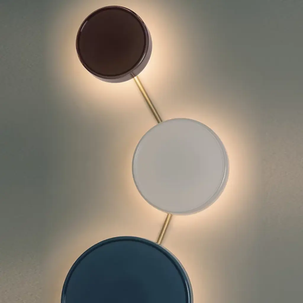 Designed by Joan Gaspar in 2024, the Caramel LED Wall Sconce with Disk from Marset features a circular translucent glass shade that softly diffuses light, creating a warm, ambient glow. Its hidden light source accentuates its simplicity and volume, projecting light outward and onto the wall. Designed for versatility, this fixture can be used individually or in creative arrangements. An accessory allows connecting multiple sconces, enabling dynamic configurations—linear, clustered, or asymmetrical-offered in monochrome or mixed finishes to create artistic illuminated murals.