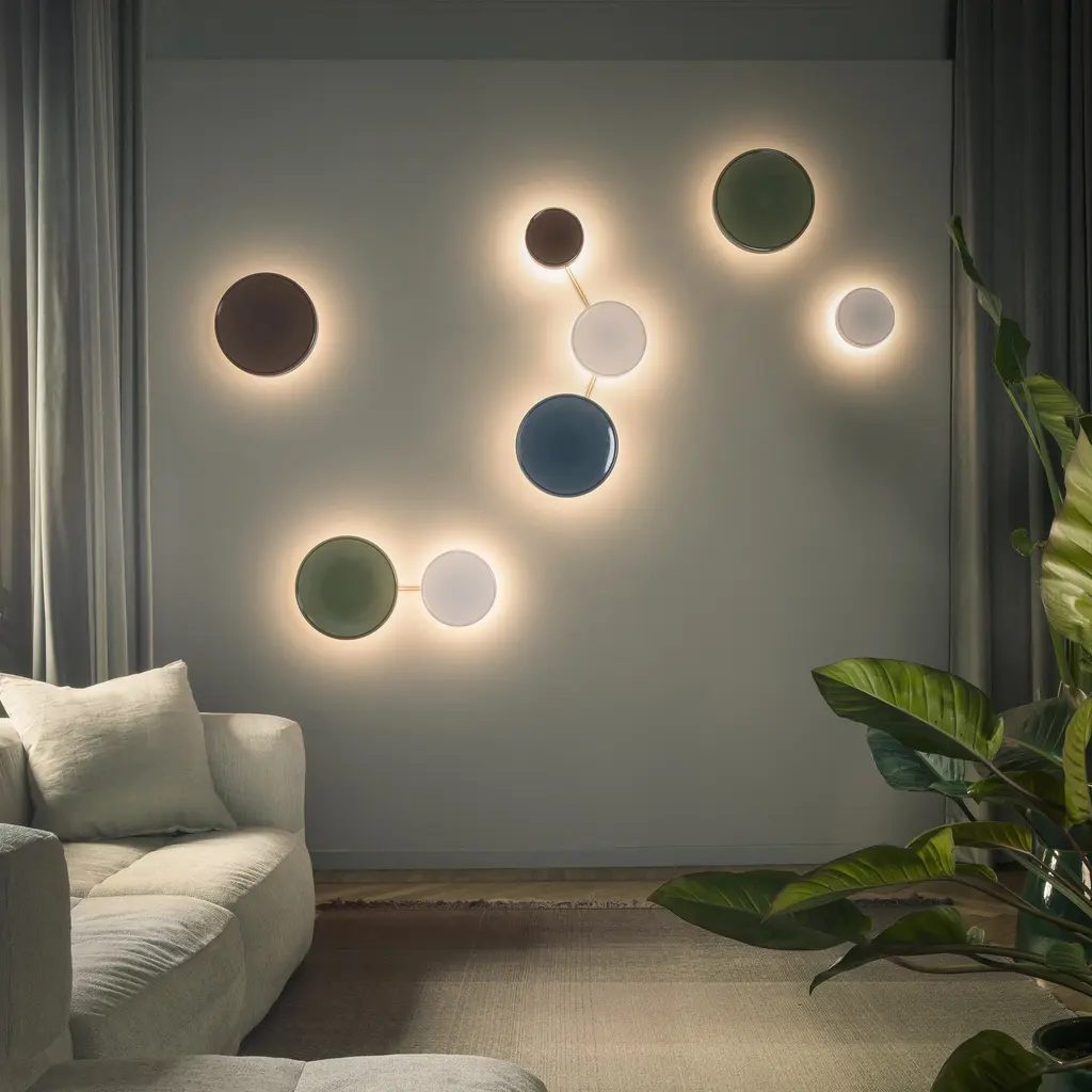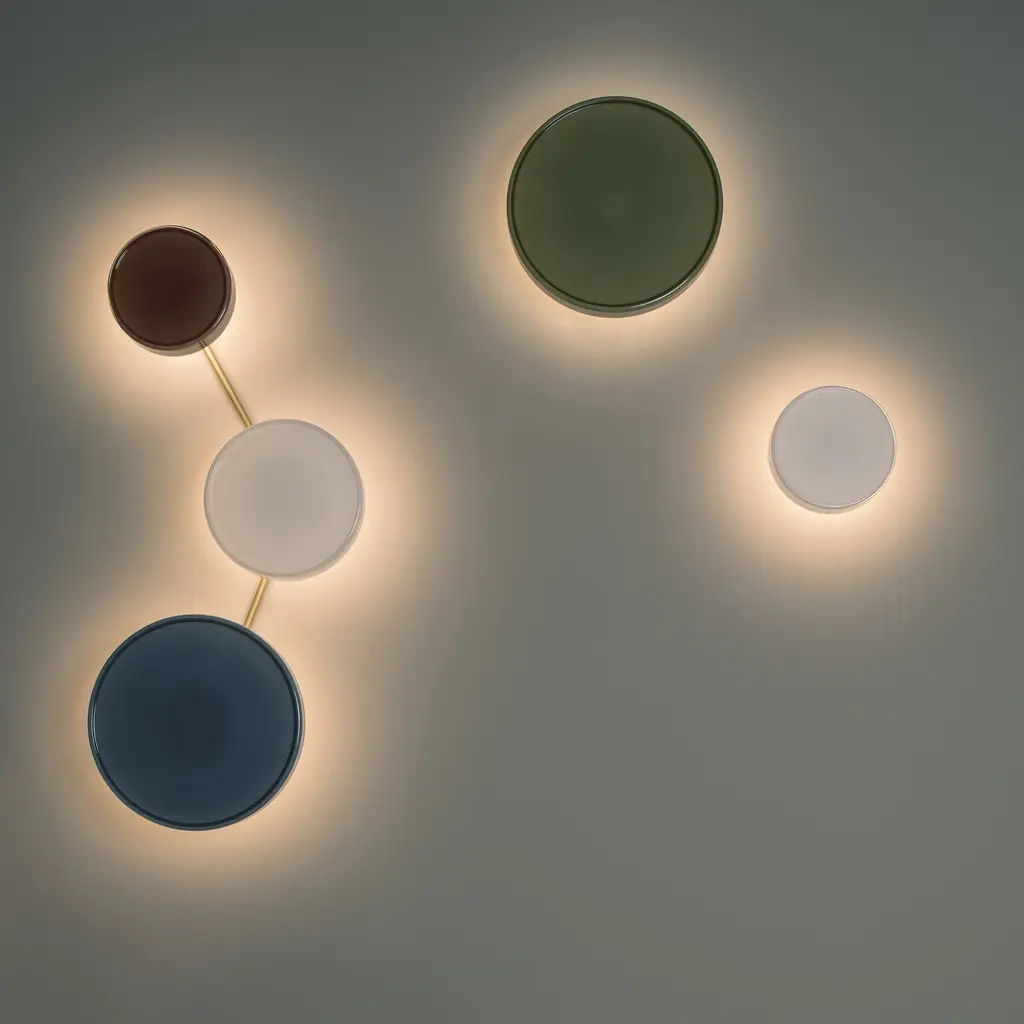 Elevate your space with the Caramel Single Wall Sconce from Marset. Inspired by illuminated sculptures, this wall lamp boasts stunning glass craftsmanship that creates a mesmerizing circular form. When lit, it exudes a diffused, soft, and warm light that adds a touch of elegance to any room. Unlit, it creates an artistic and striking play of light on the wall. The translucent glass shade also adds depth and simplicity to this exquisite piece. Add this exclusive design to your home and experience the beauty and ambiance it brings. Highlights