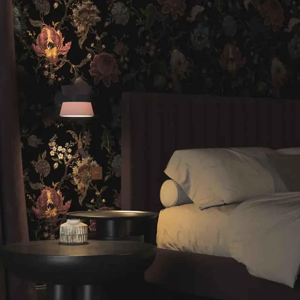 Rich and sumptuous like soft caramel, the Caramelo Wall Sconce from Carpyen Easy Light delights with radiating golden hues. Creator Jette Scheib makes pieces that rethink functional objects while making one feel good. This piece shows sophistication with an elegantly finished backplate and cinching ring accent. A microfiber and fabric shade extends out of the ring with a high-style colorway. Their fine texture eases the light out as a cozy ambient glow.