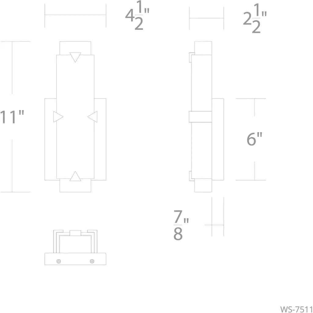 Modern Geometry. Rectilinear shapes intersect with triangles in the Carlisle wall sconce, creating a bold graphic frame that holds a color temperature selectable LED light bar. The sleek silhouette casts a warm glow into the surrounding space. Carlisle is offered in 11, 20, 27 and 37-inch sizes and is available in a choice of aged brass or brushed nickel finishes.