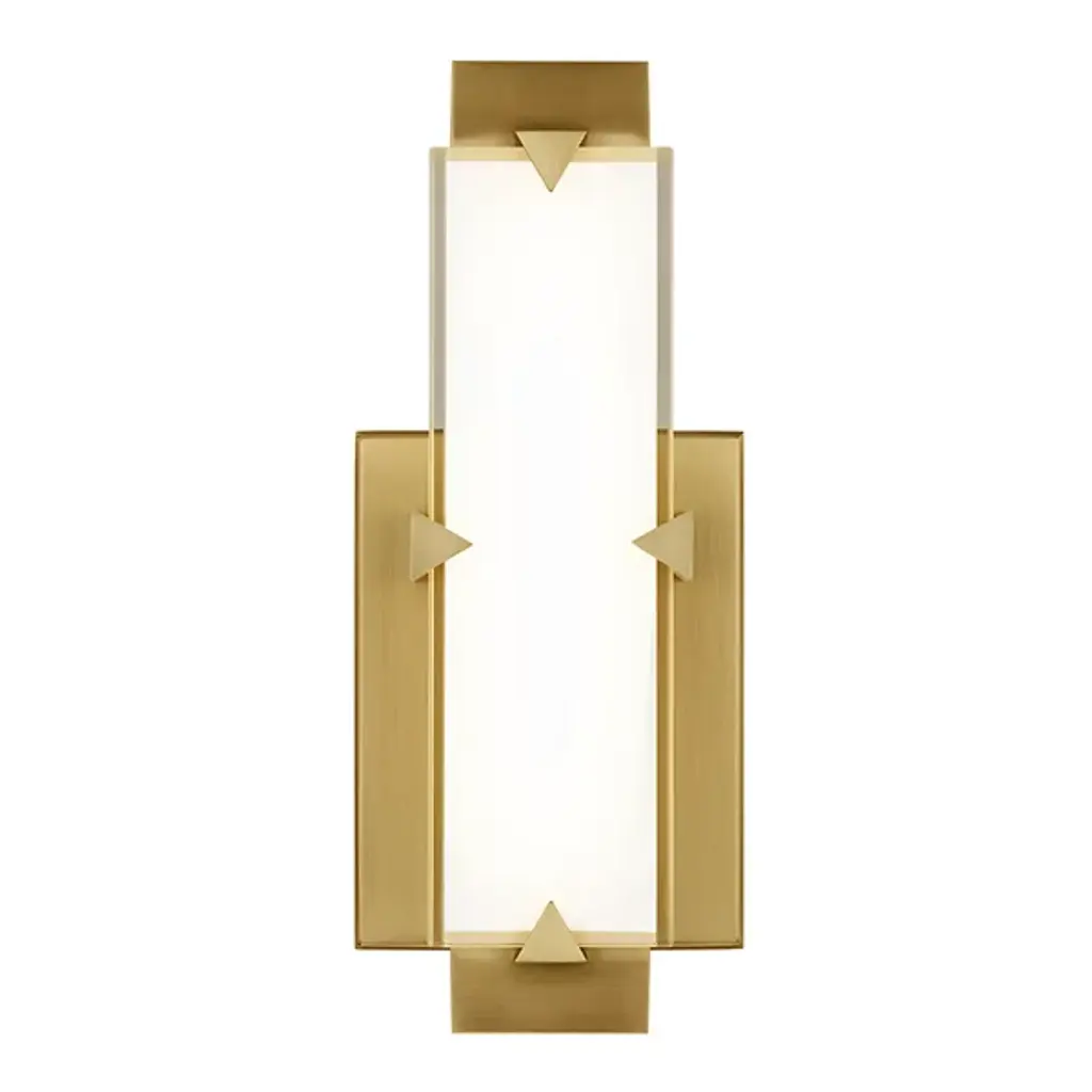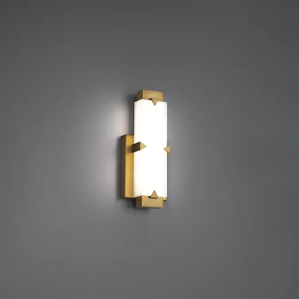 The Carlisle LED Wall Sconce from Modern Forms intersects rectilinear shapes with triangular elements to create bold graphic geometry along wall surfaces. Sharp angles meet at precise points while the white mitered glass diffuser softens the LED light output. The aluminum frame establishes clean lines that emphasize the mathematical relationship between rectangular and angular forms. Color temperature selection allows users to adjust warmth levels for different environments. The geometric framework serves as both structural support and decorative element, making the mounting hardware an integral part of the overall design.