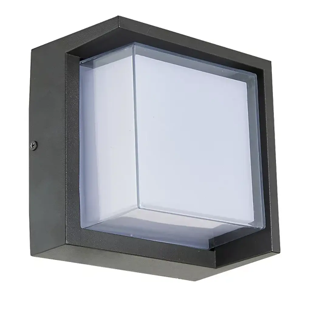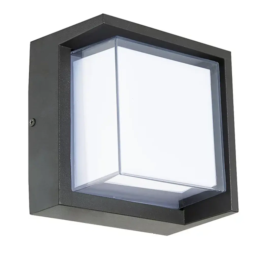 The Carmen LED Outdoor Square Wall Light by Huxe boasts clean lines and modern design for a chic addition to exterior spaces. Constructed from robust aluminum, this square-shaped fixture features an angular hood to guide its light in the desired direction. A covered white acrylic shade houses the fixture’s integrated LED lamping, offering a soft diffusion to its warm glow. Simple, sleek, and sophisticated, this fixture expertly combines adaptable design with energy-efficient power.