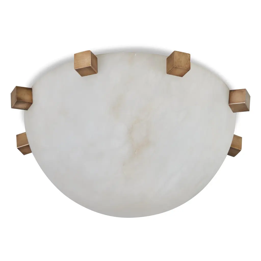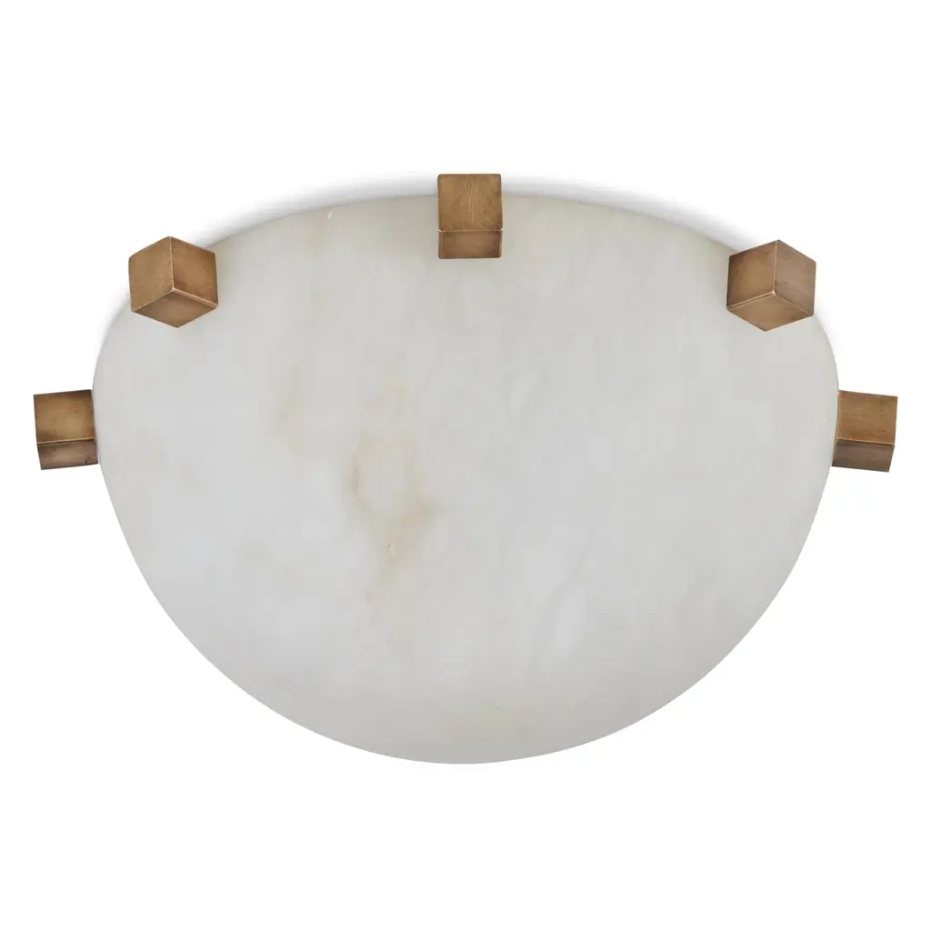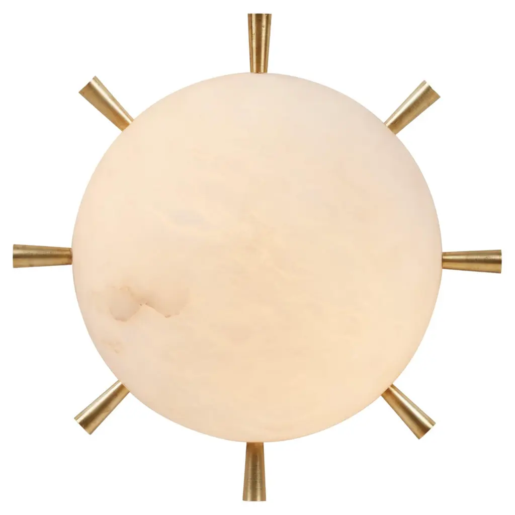 'Carré' Alabaster and Brass Wall or Ceiling Lamp by Denis De La MesiereHandcrafted in Los Angeles in the workshop of noted French designer and antiques dealer Denis de le Mesiere, who meticulously pays homage to the work of Pierre Chareau with scrupulous attention to detail and materials. Executed in the highest quality European alabaster mounted on a minimalist steel bracket with brass accents, this ultra refined design adds a sculptural element and focal point of incomparable beauty. Can be used as a flush mount or sconce.Accommodates 2 x standard candelabra base (e12) LED bulbs and is compatible for hardwiring with US electrical junction boxes. LED only. UL listed.Price is per item. Available in unlimited quantities, in choice of two sizes and with choice of hardware finishes. This listing is for the smaller 'Carré' with polished brass hardware. The alabaster sphere measures 11" in diameter; total diameter with hardware 13".Please note that alabaster can vary from item to item due to the organic nature of the material.Handmade to order in Los Angeles. All sales are final.