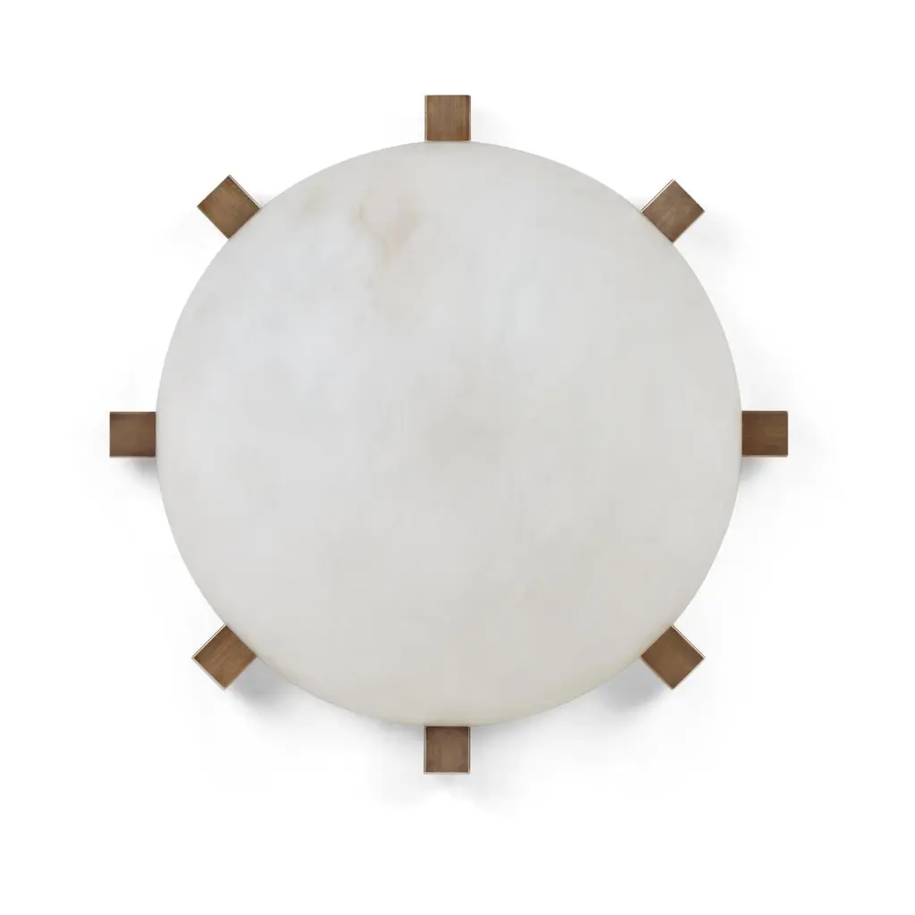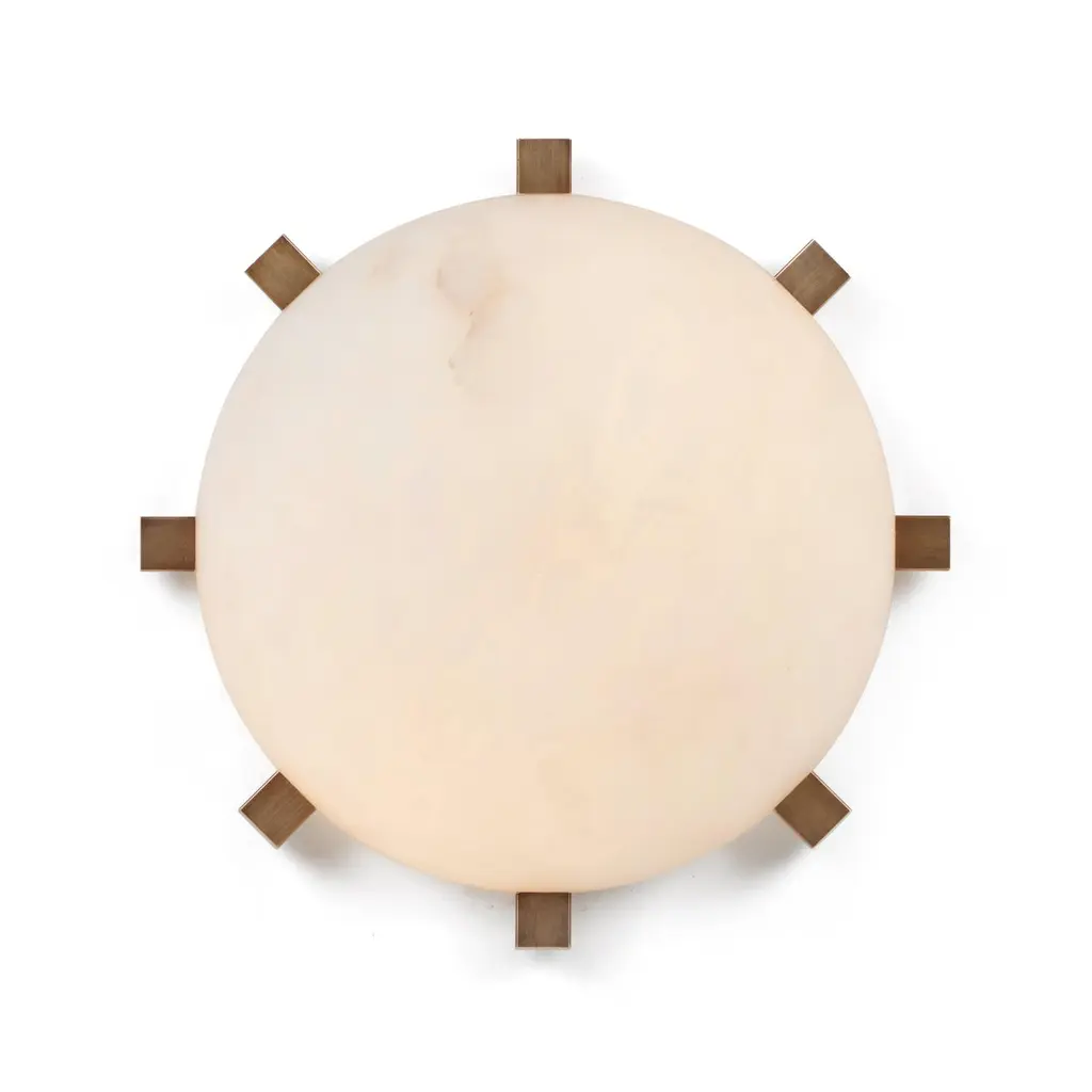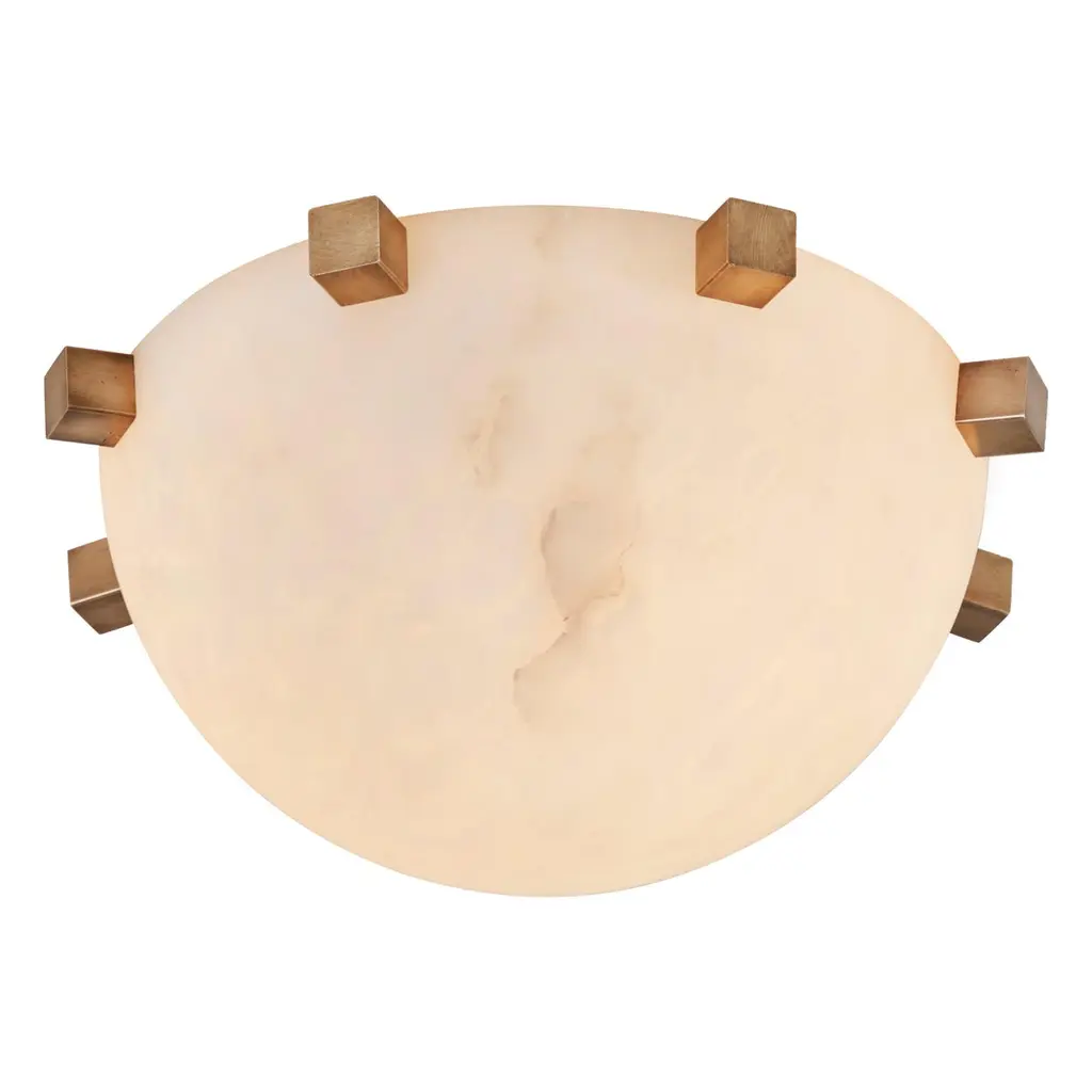'Carré' Alabaster and Brass Wall or Ceiling Lamp by Denis De La MesiereHandcrafted in Los Angeles in the workshop of noted French designer and antiques dealer Denis de le Mesiere, who meticulously pays homage to the work of Pierre Chareau with scrupulous attention to detail and materials. Executed in the highest quality European alabaster mounted on a minimalist steel bracket with brass accents, this ultra refined design adds a sculptural element and focal point of incomparable beauty. Can be used as a flush mount or sconce.Accommodates 2 x standard candelabra base (e12) LED bulbs and is compatible for hardwiring with US electrical junction boxes. LED only. UL listed.Price is per item. Available in unlimited quantities, in choice of two sizes and with choice of hardware finishes. This listing is for the smaller 'Carré' with polished brass hardware. The alabaster sphere measures 11" in diameter; total diameter with hardware 13".Please note that alabaster can vary from item to item due to the organic nature of the material.Handmade to order in Los Angeles. All sales are final.