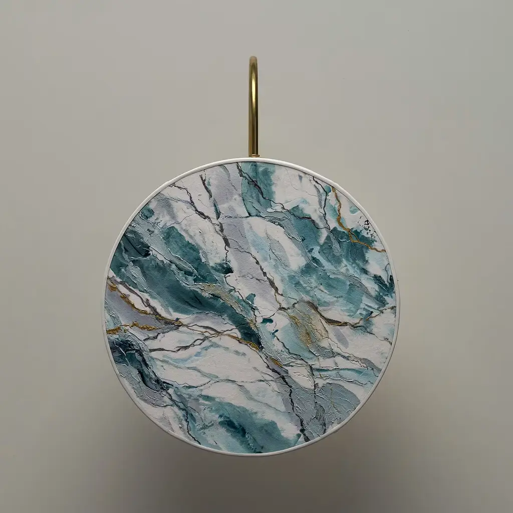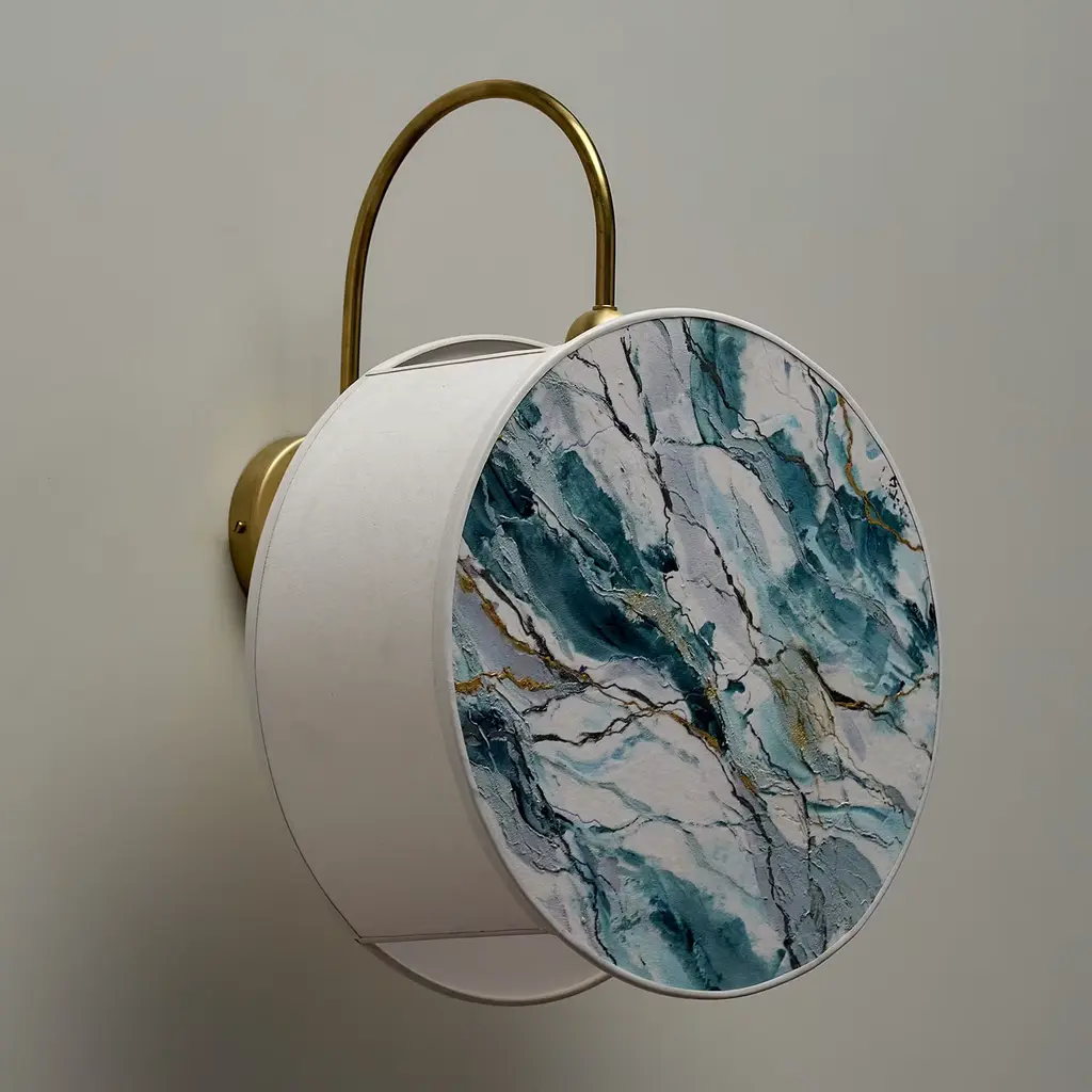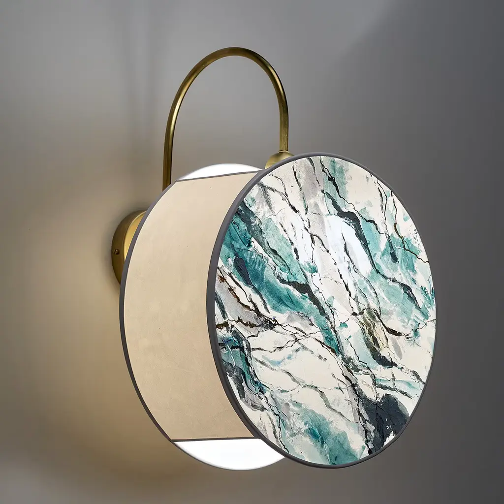 From the Secret World Collection comes the Carribean wall lamp, a dedication to a unique and historical art: the Venetian stucco and marble present in palaces and sumptuous Venetian residences. The front facade of this lampshade is entirely hand-painted with infinite gradations in the veins in aqua green, gray blue and subtle gold streaks.