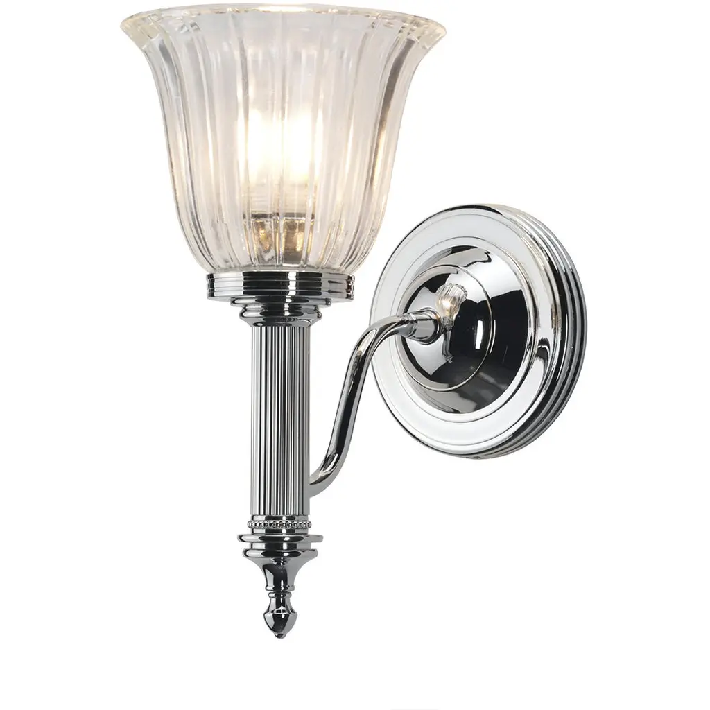 Carroll1 1 Light bath light in Polished Bronze with clear ribbed glass.