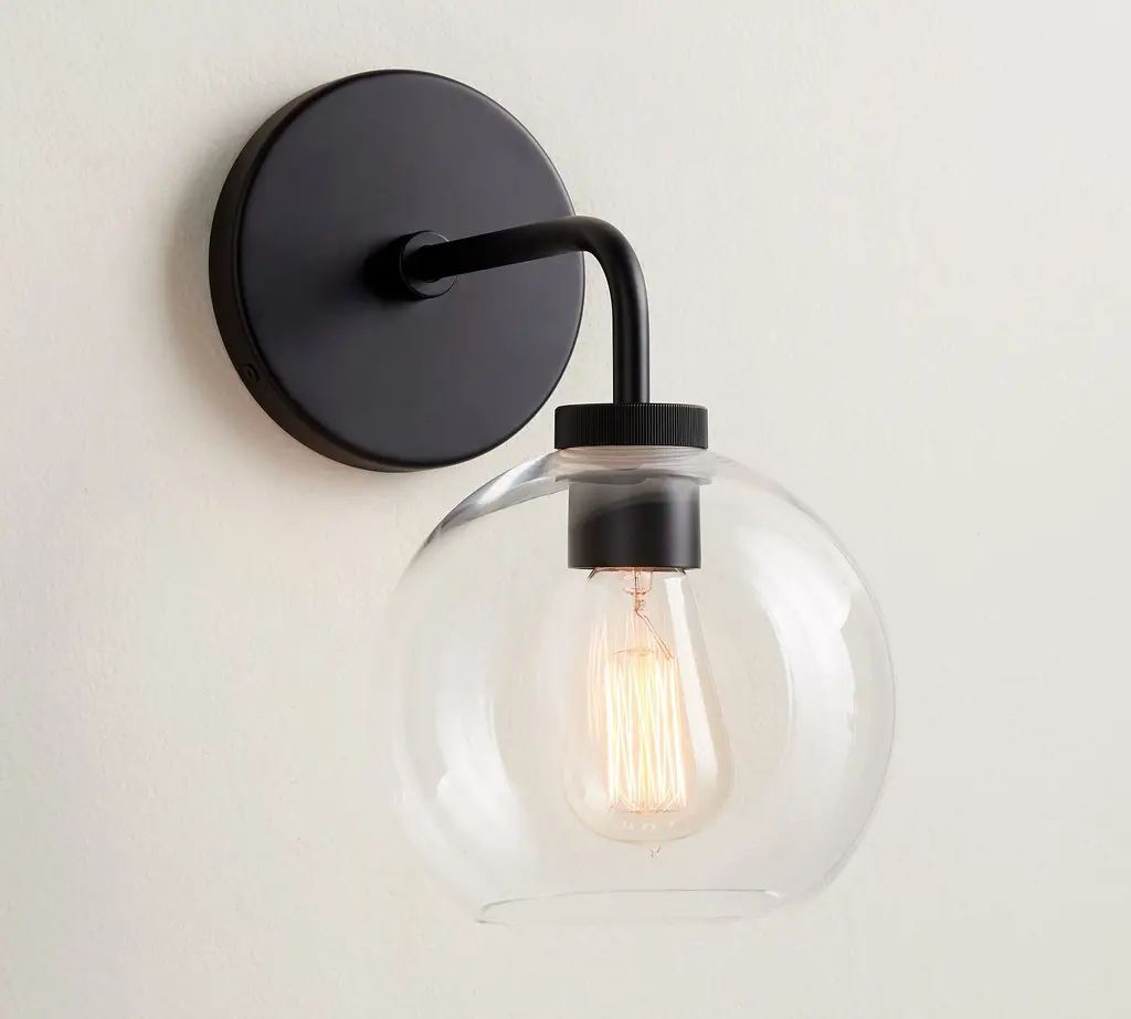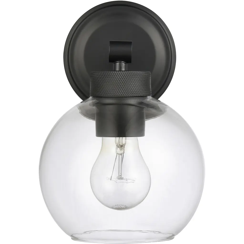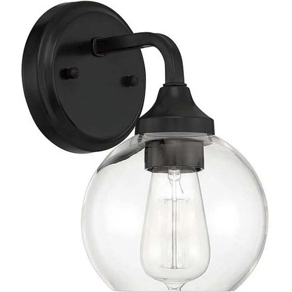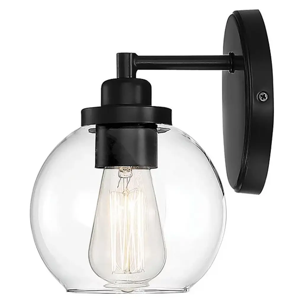 The Carson Bath Sconce by Savoy House brings a clean, minimalistic design to the home. With a subtle vintage look, this bath sconce has a glass globe shade with an open bottom for easy bulb replacement and a mid-century modern touch. Its streamlined frame is anchored to the wall by a circular backplate that reflects the smooth curves of its shade and brings a fresh and modern quality to the room as it brightens.