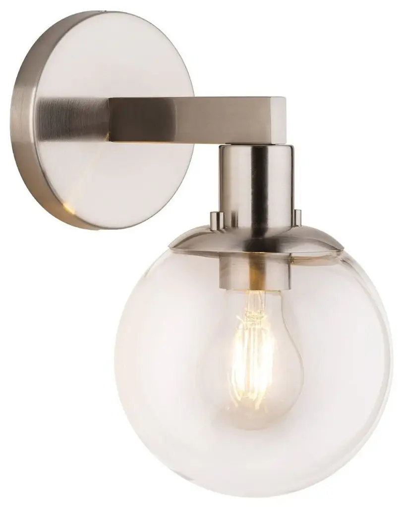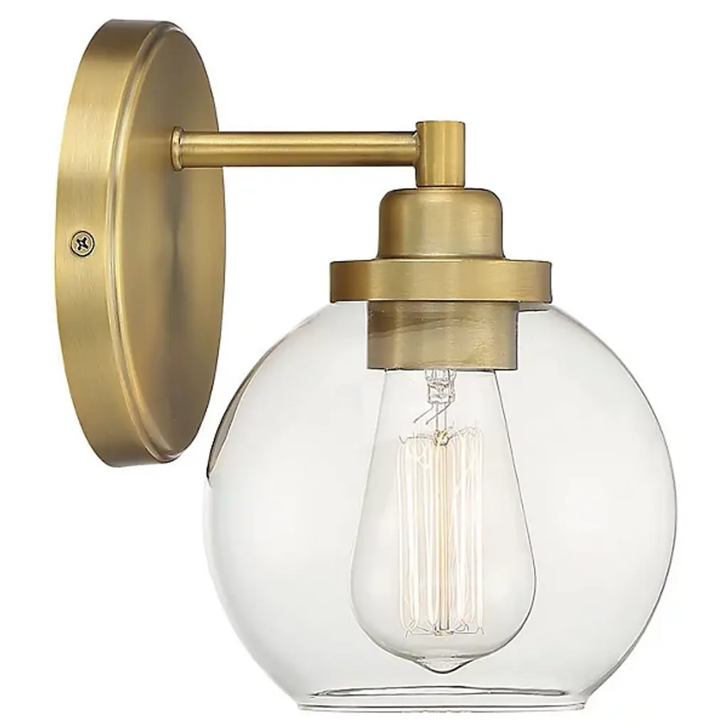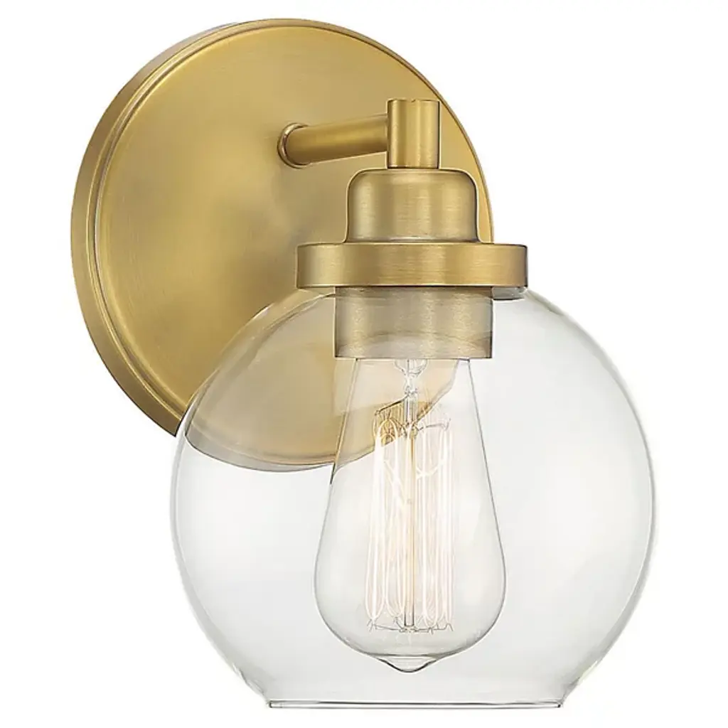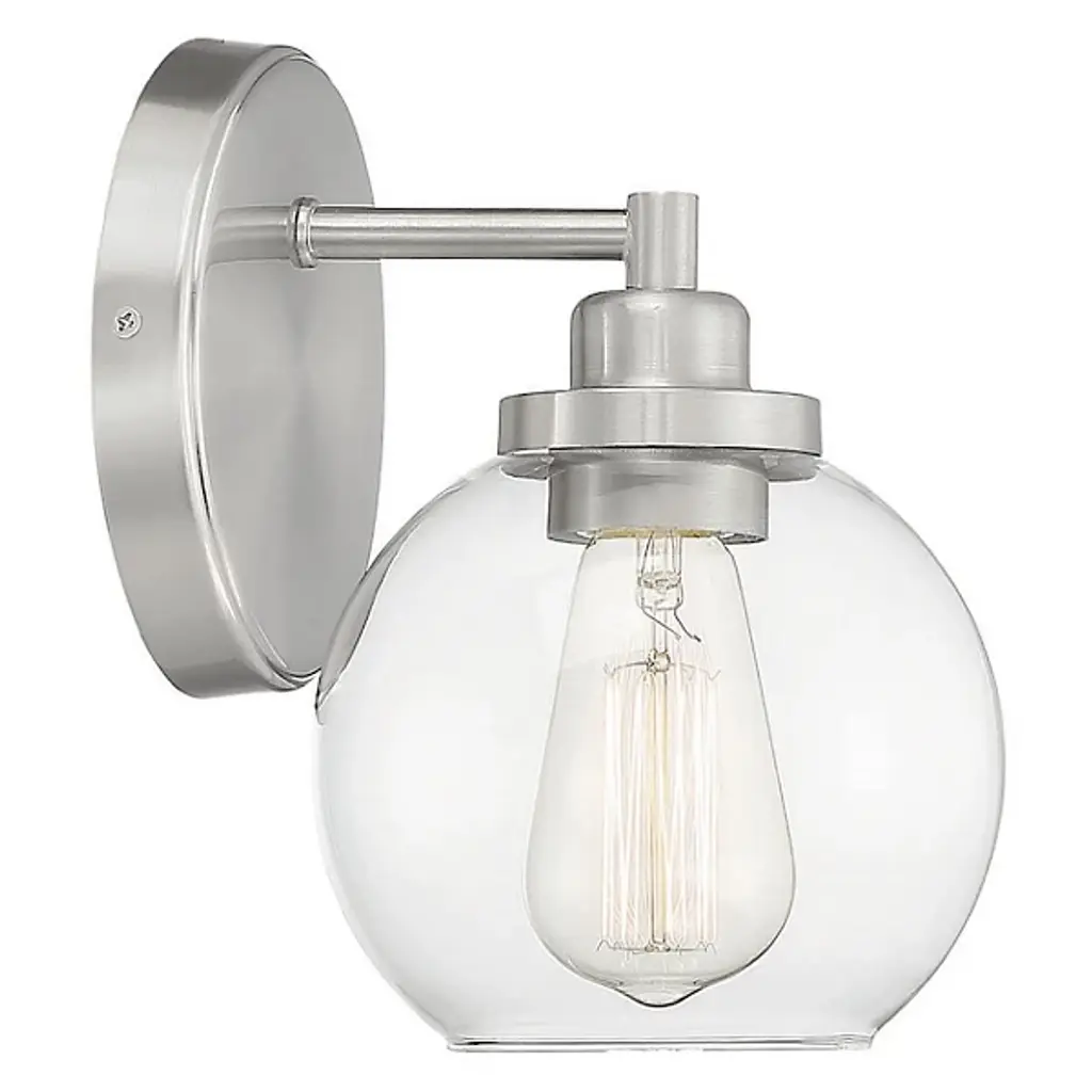 The Carson Bath Sconce by Savoy House brings a clean, minimalistic design to the home. With a subtle vintage look, this bath sconce has a glass globe shade with an open bottom for easy bulb replacement and a mid-century modern touch. Its streamlined frame is anchored to the wall by a circular backplate that reflects the smooth curves of its shade and brings a fresh and modern quality to the room as it brightens.