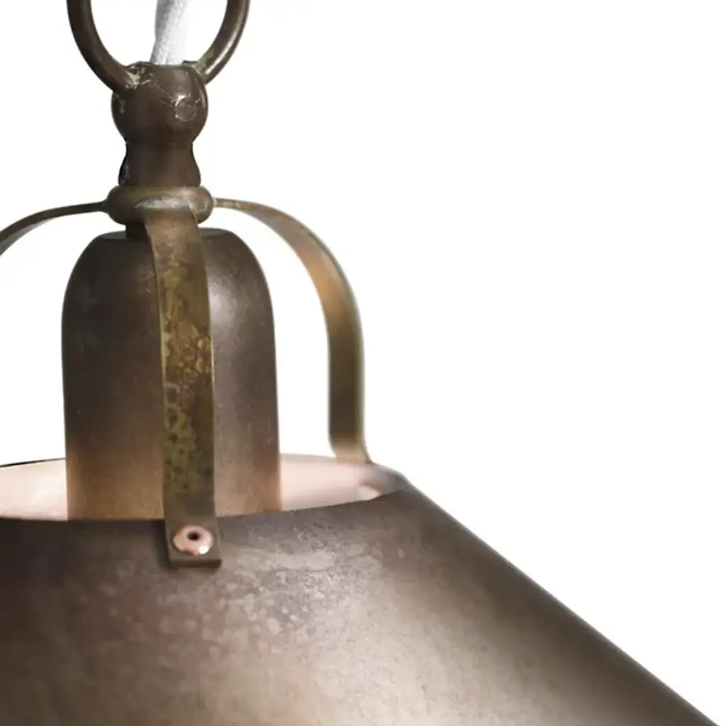 Add a stylish industrial presence to indoor walls with the solid, simple lines of the Cascina Wall Sconce from Il Fanale. A robust fixture in natural brass, it extends a central stem from a contoured disc wall mount, curving down to secure a single socket lamp inside a flaring conical shade that cuts glare to the sides, focusing bright glare into a mix of focused downlight and reflected glow. Four slender bands sweep down from just above the lamping to keep the shade in place, retaining the fixture’s robust look while adding a welcome touch of negative space.
