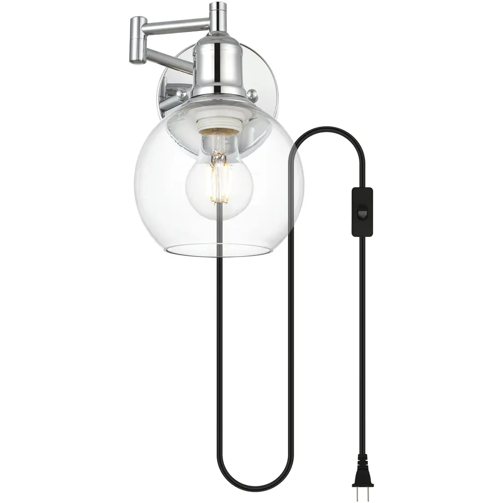 Simplicity and minimalism are the new forms of beauty when it comes to style and design. Shown in a glass shade, this wall sconce is versatile and can be placed in the bedroom, living room,entry way, or hallway. It is just what you need to shine a little light wherever you need it. The arm can swing as you please next to the bed or in the corner of your library. Compatible with dimmers, so you'll have the right amount of light in any given time of the day. Available in multiple finishes. Comes with a six foot long two prong power cord. Gently push the rocker switch directly on the cord to power on or off.