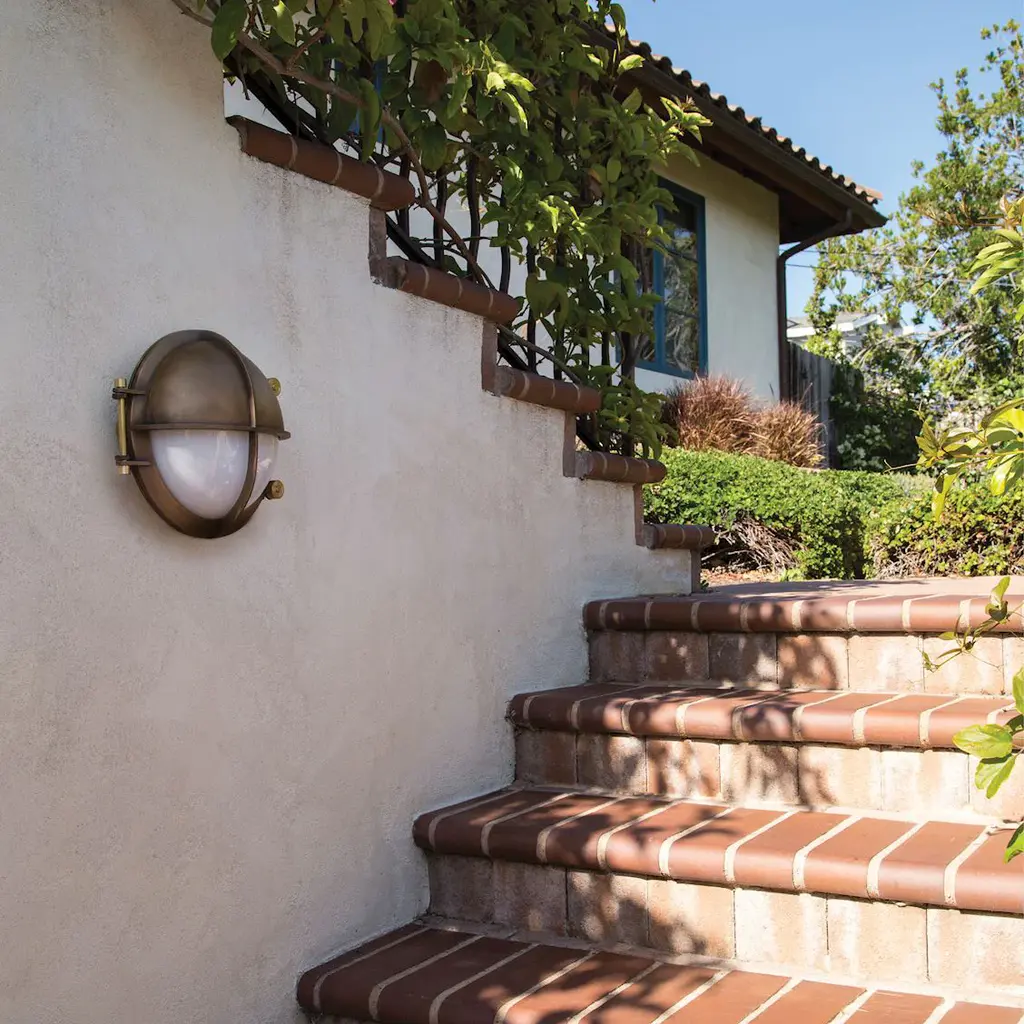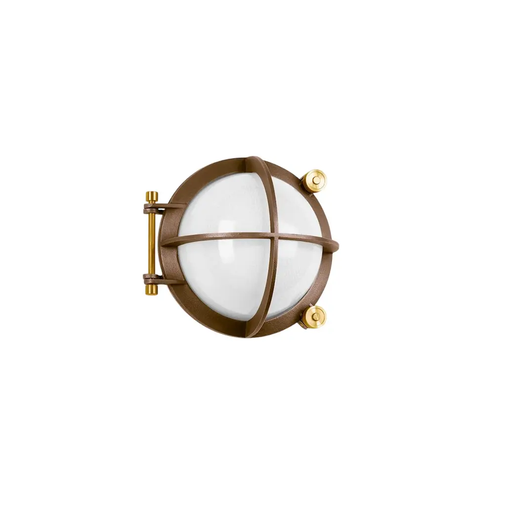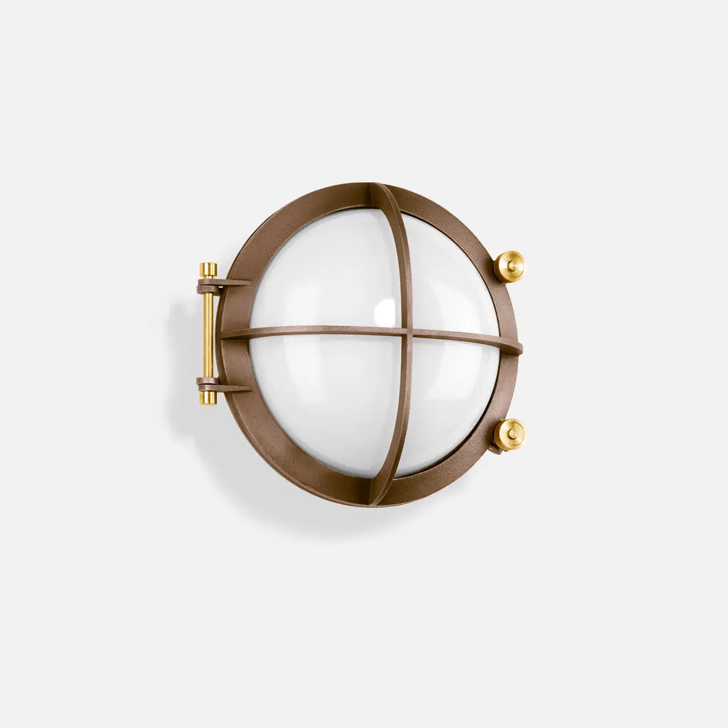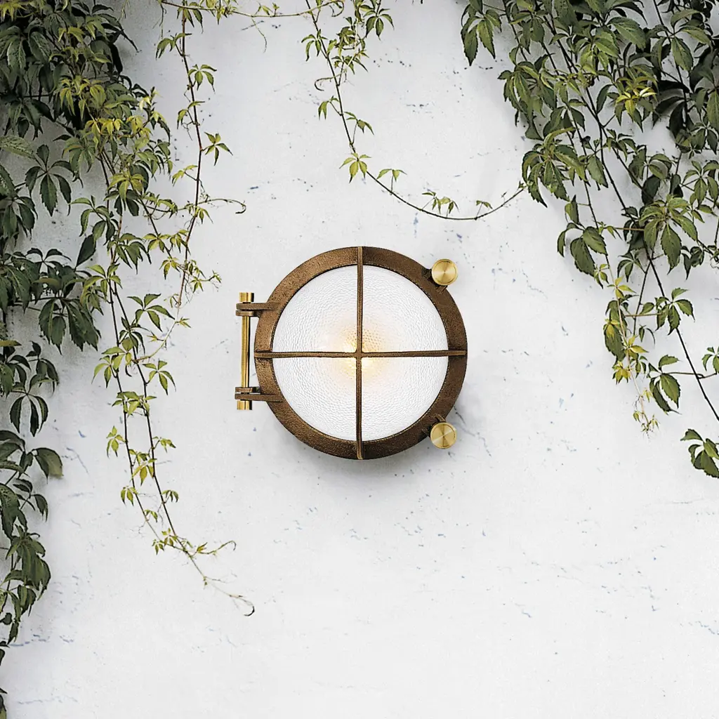 The Cast Bronze Outdoor LED Wall Sconce from Bega combines nautical-inspired design with exceptional durability. Expertly cast from bronze, its round profile shields half of the white crystal glass diffuser with natural alloy for enhanced protection against the elements. Brass details allow tool-less entry, enabling easy installation and maintenance. Over time, the bronze develops a distinctive natural patina, adding rustic character while the advanced LED technology ensures efficient, long-lasting illumination. Highlights