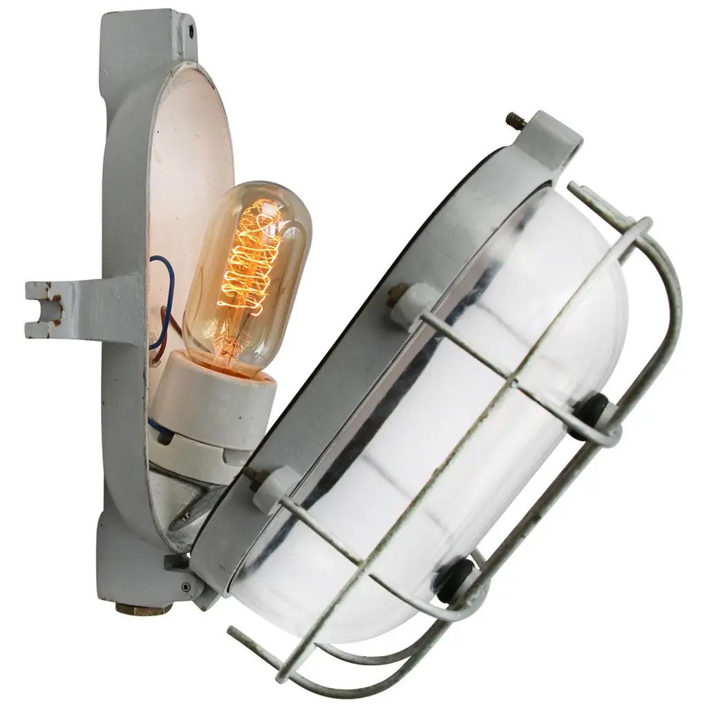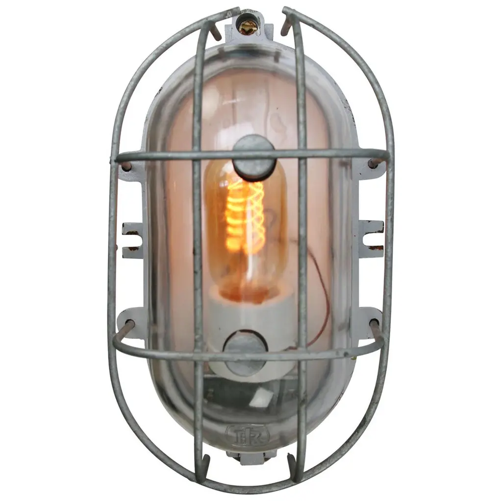 Industrial wall or ceiling lamp made by ‘Industria Rotterdam’cast iron, clear glassWeight: 2.78 kg / 6.1 lbPriced per individual item. All lamps have been made suitable by international standards for incandescent light bulbs, energy-efficient and LED bulbs. E26/E27 bulb holder. The new wiring is CE certified or UL listed. 100% safe. They can be set in operation immediately. Excluding light bulb.