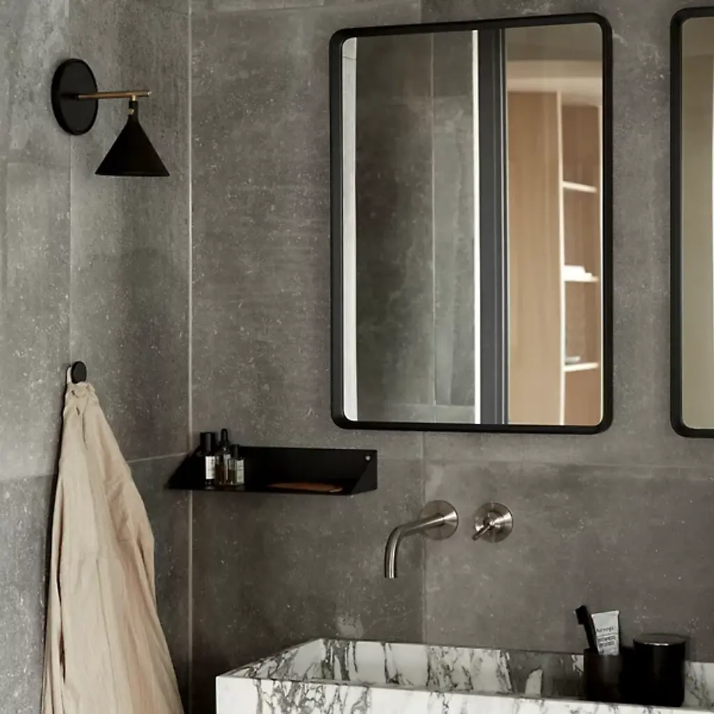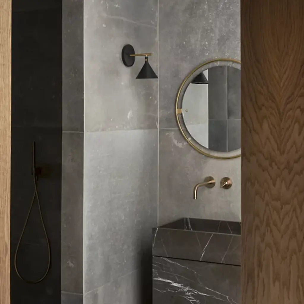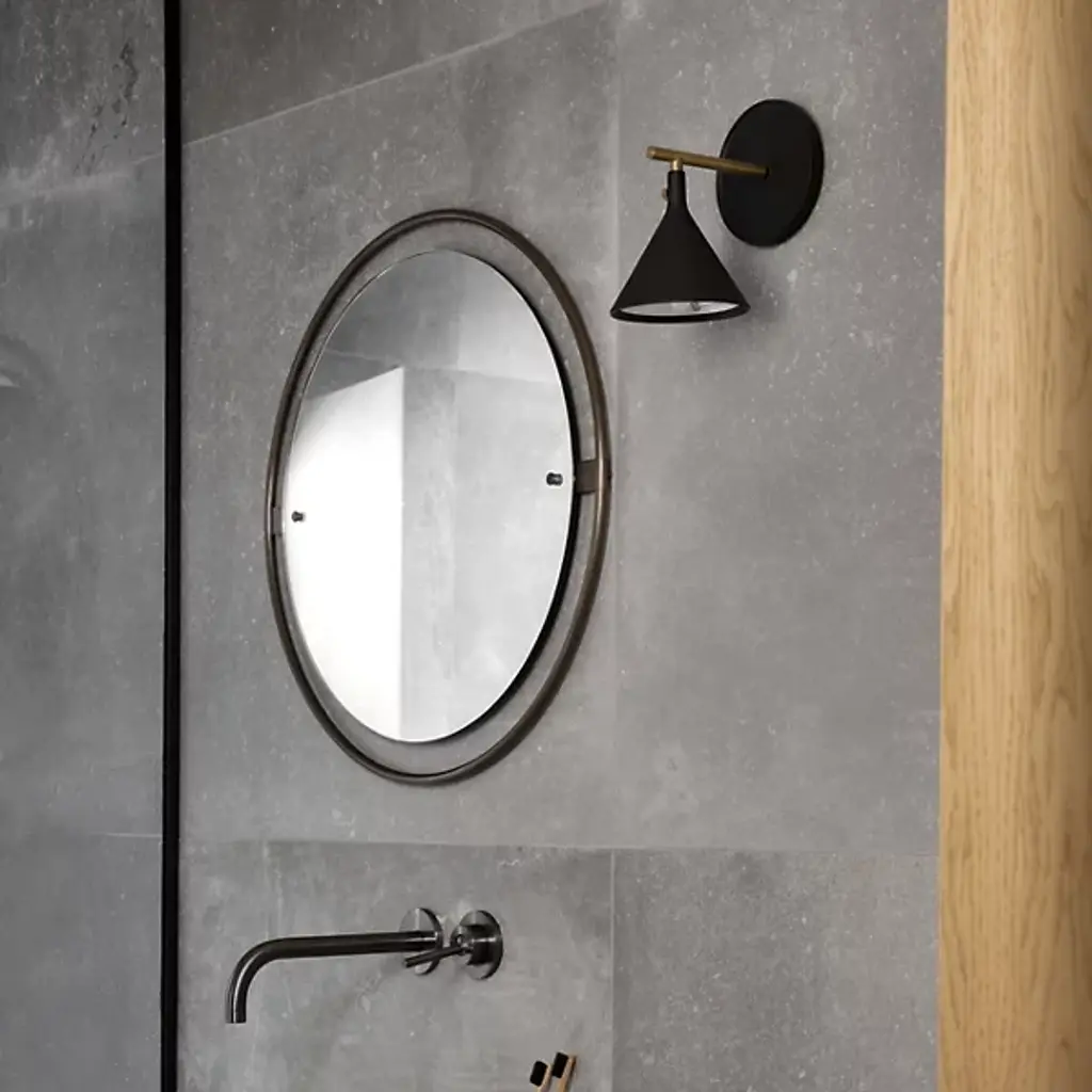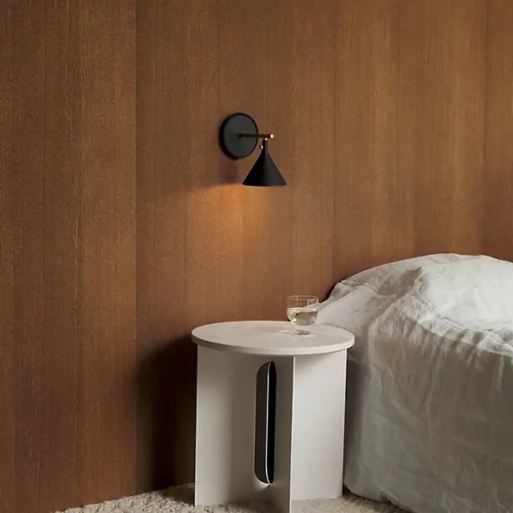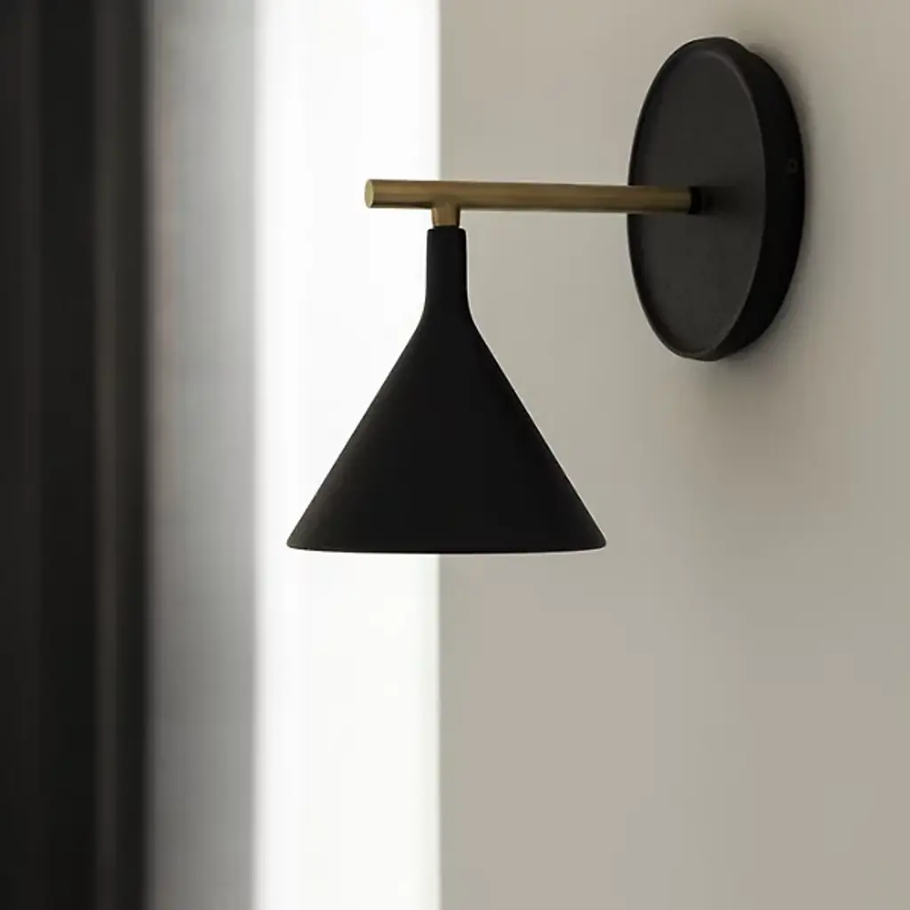 The Cast LED Wall Sconce from Audo Copenhagen features a graphic expression incorporating new components to create a distinct identity. It was designed by Thomas Chung and Jordan Murphy and inspired by the age-old plumb weights from which masons and carpenters have hung lines since ancient Egyptian times. A vertical bar extends from a mounting plate for an engaging form, bringing soft, glare-free light to various decors, regardless of the established motif.