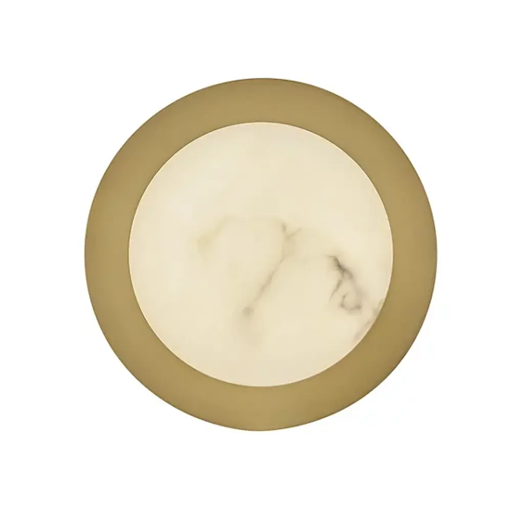 The Cava Wall Sconce from Fredrick Ramond features a distinctive low-profile design that enhances modern and transitional interiors with its sleek silhouette. Its Cloudstone shade showcases natural veining and color variations, adding organic texture and depth. Lustrous metal trim provides a refined contrast, elevating its sophisticated appeal. The mounting hardware is concealed on the backplate, designed for a seamless look. Its bold form and intricate details make it a functional lighting solution and a striking statement piece in any space.