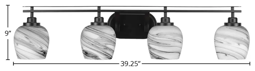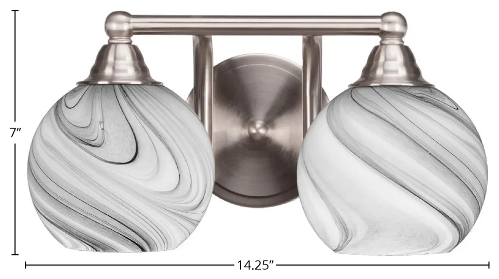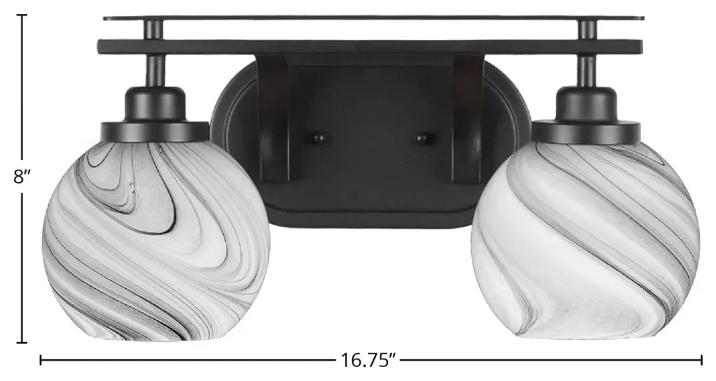 Cavella 2 Light Bath Bar In Matte Black Finish, 5.75" Onyx Swirl Glass