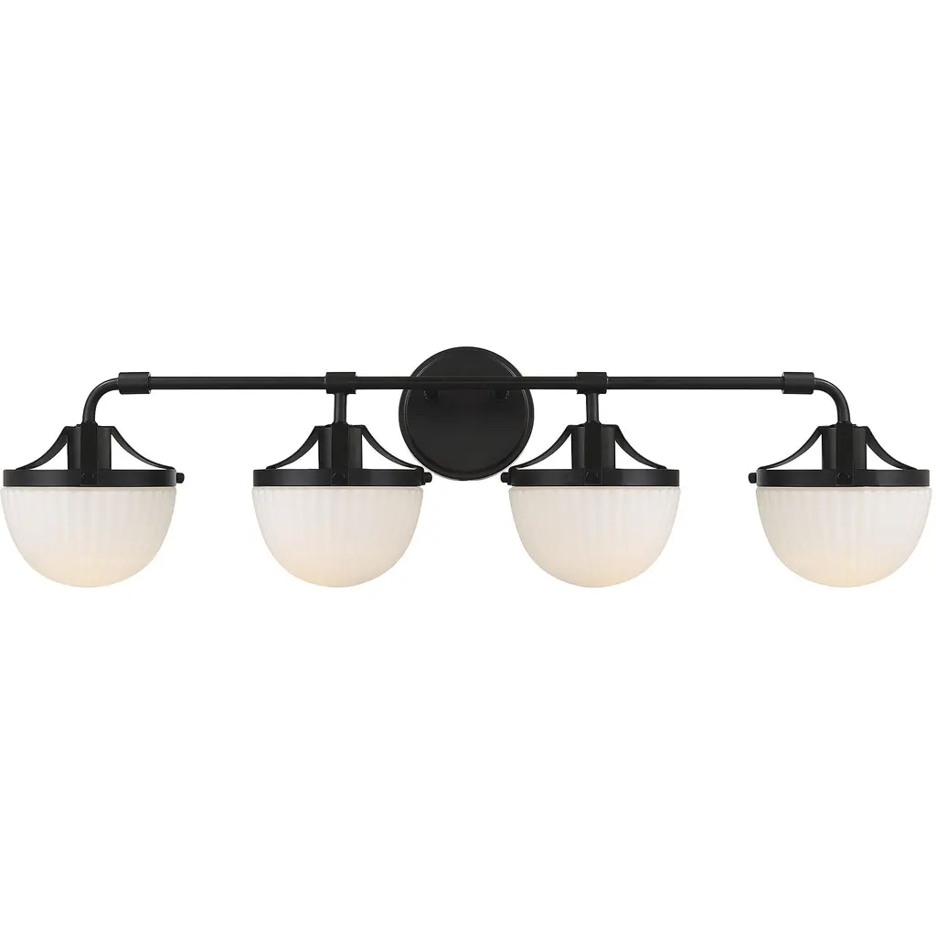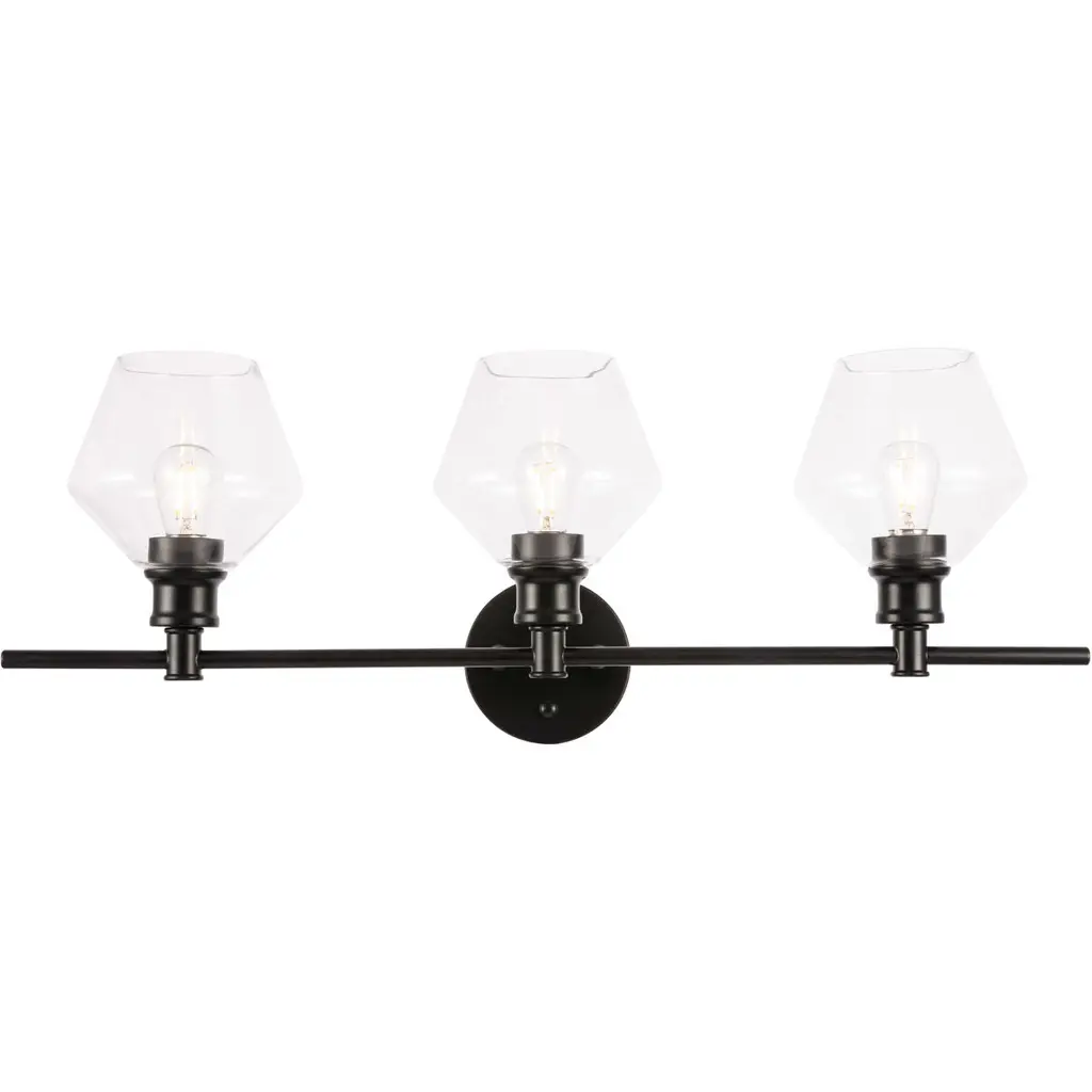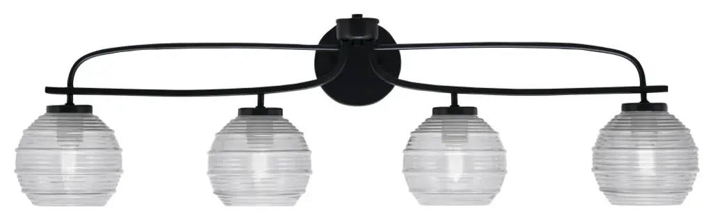 Cavella 3 Light Bath Bar, Matte Black Finish, 6" Clear Ribbed Glass