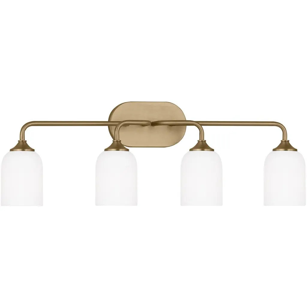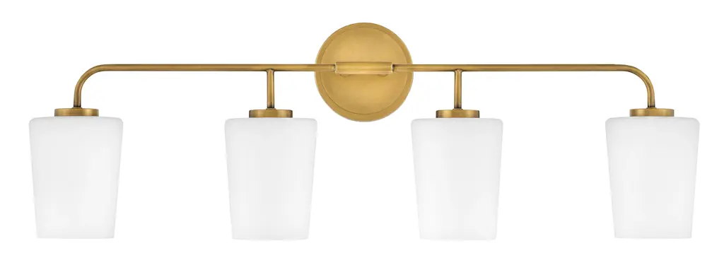 Cavella 3 Light Bath Bar, New Age Brass Finish, 4.5" Square White Muslin Glass