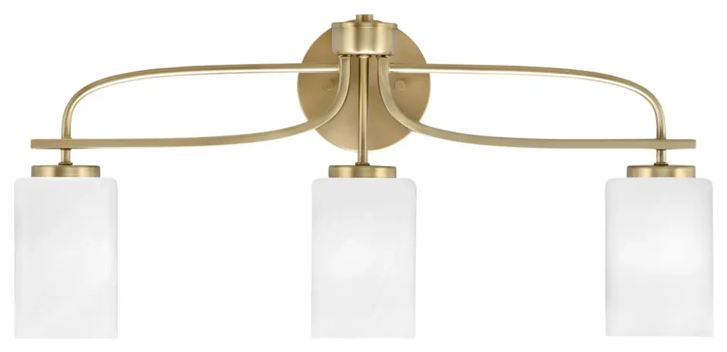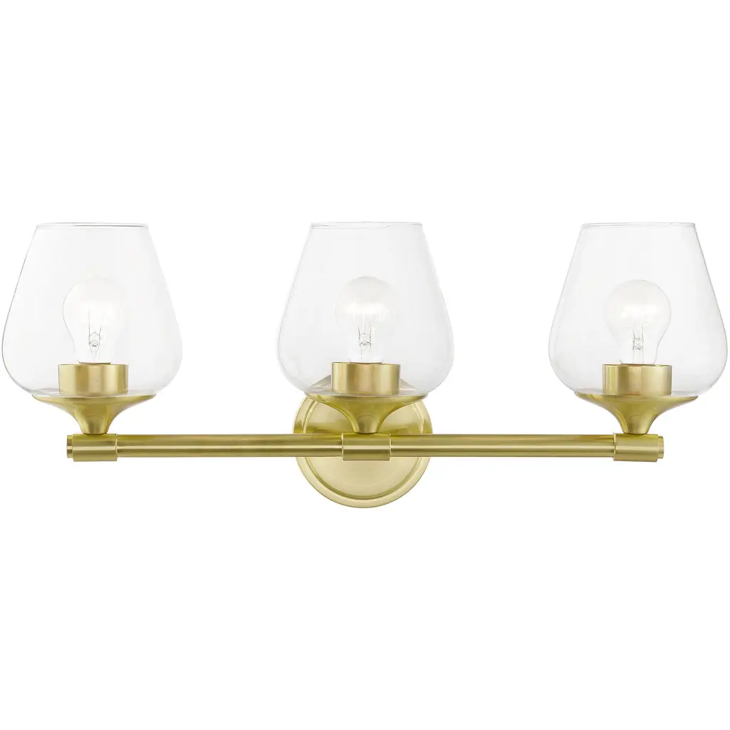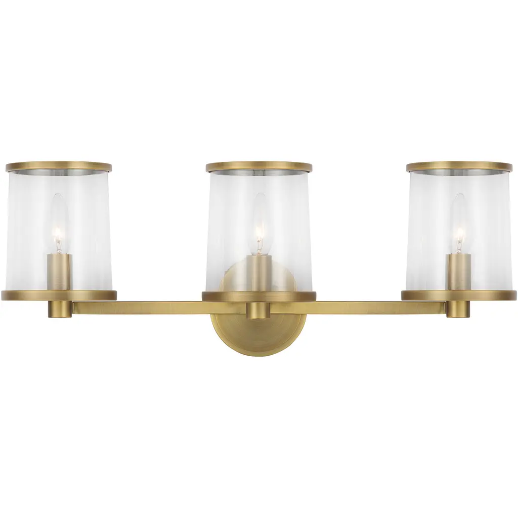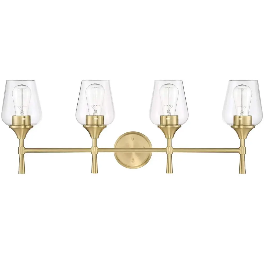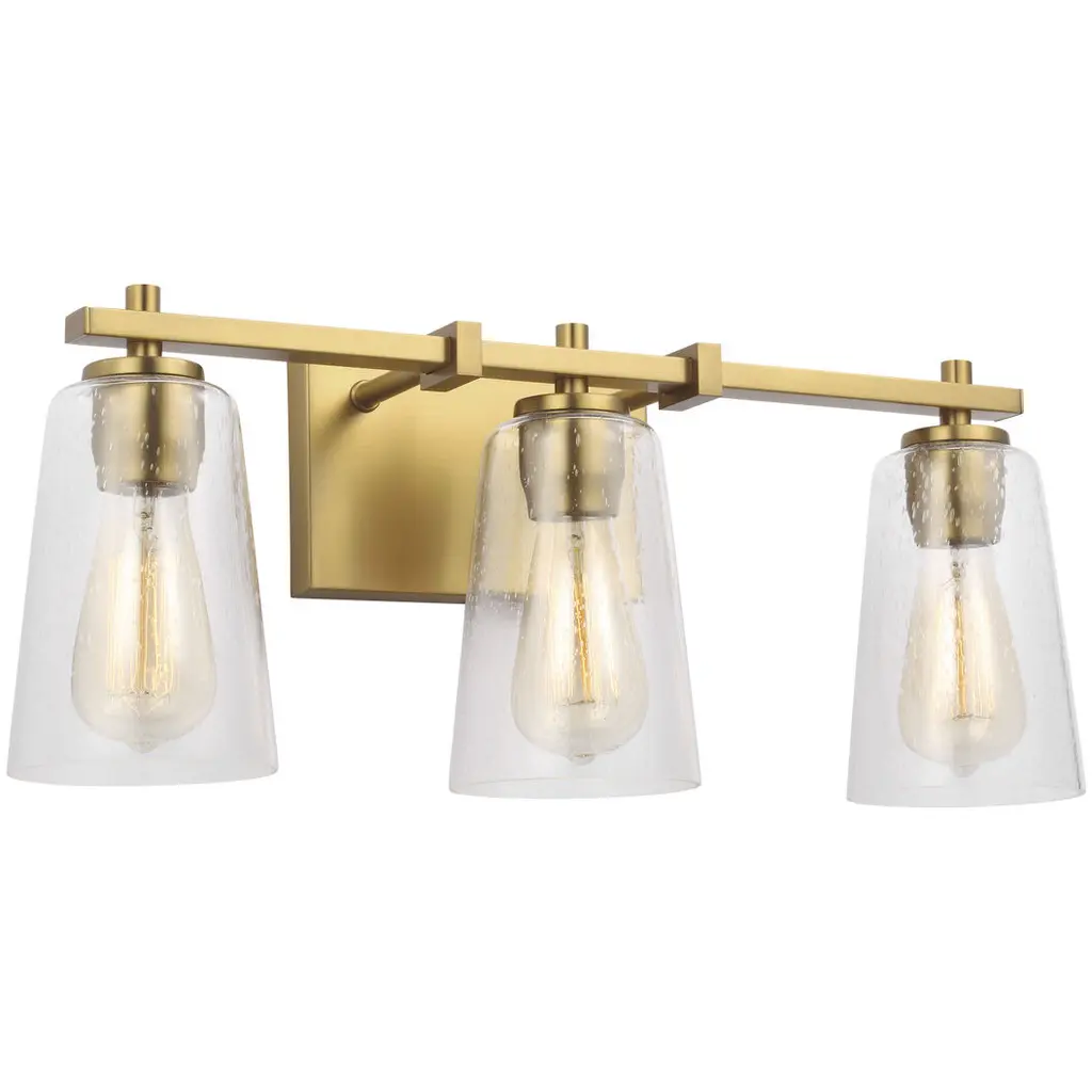 Cavella 3 Light Bath Bar, New Age Brass Finish, 4" Clear Bubble Glass