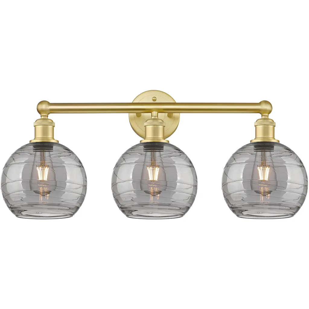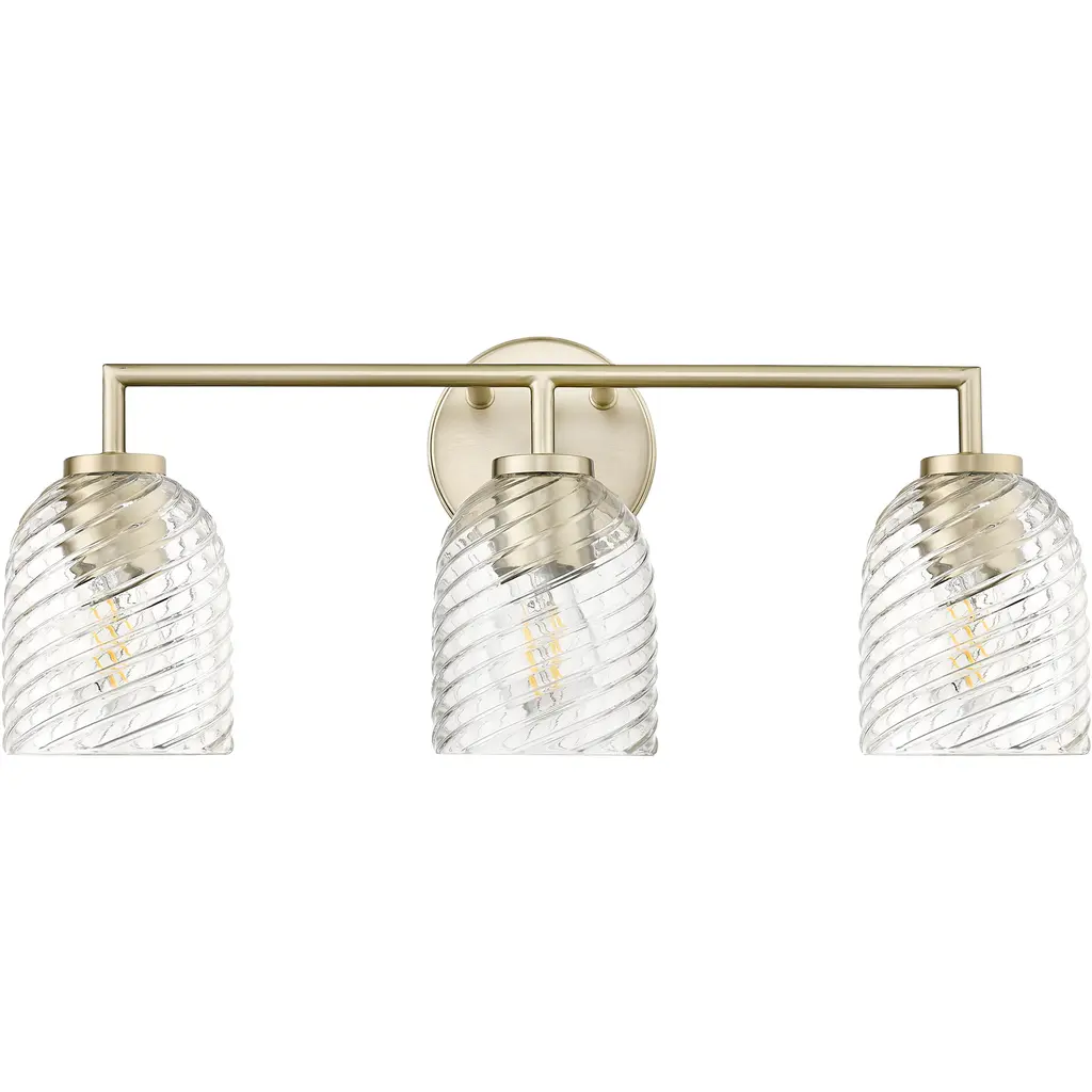 Cavella 3 Light Bath Bar, New Age Brass Finish, 6" Clear Ribbed Glass