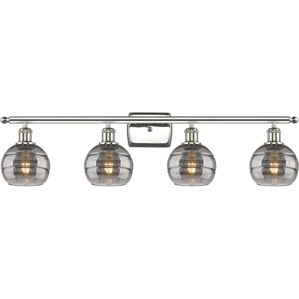 Cavella 4 Light Bath Bar, Graphite Finish, 6" Smoke Ribbed Glass