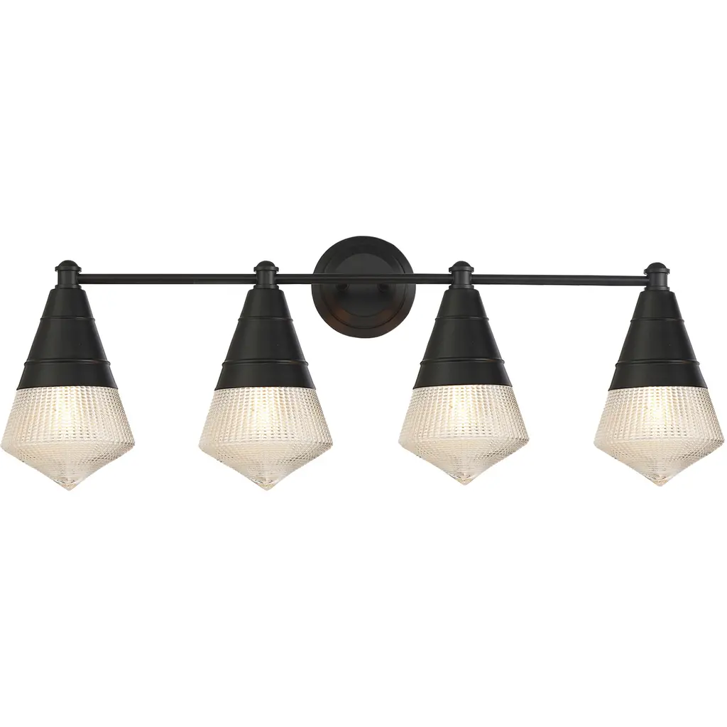 Cavella 4 Light Bath Bar In Graphite Finish, 5" Smoke Textured Glass