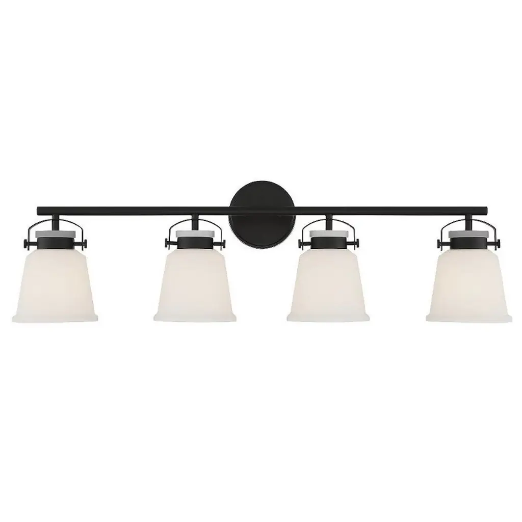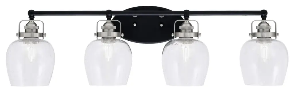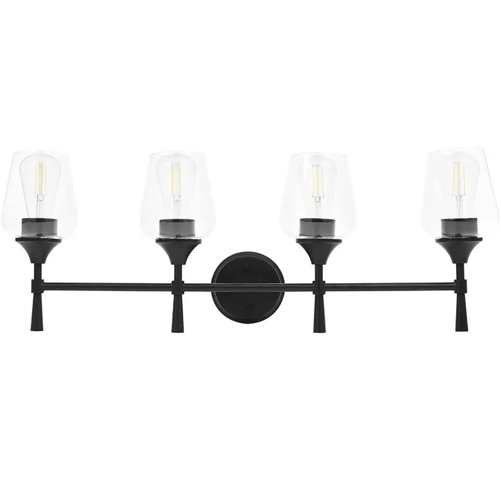 Cavella 4 Light Bath Bar, Matte Black Finish, 4.5" Square Clear Bubble Glass