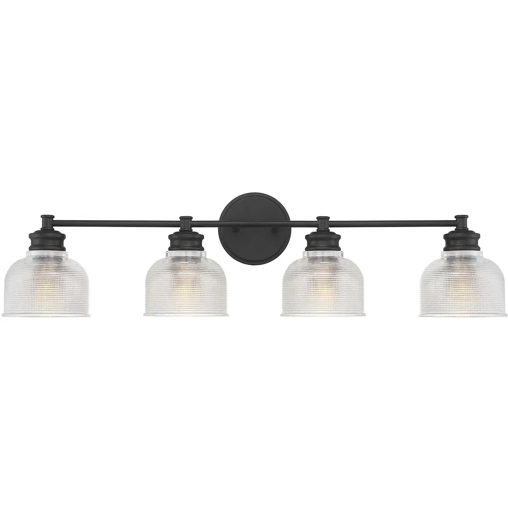 Cavella 4 Light Bath Bar, Matte Black Finish, 7" Black Matrix Glass