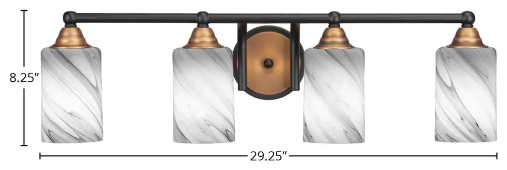 Cavella 4 Light Bath Bar, New Age Brass Finish, 6" Onyx Swirl Glass