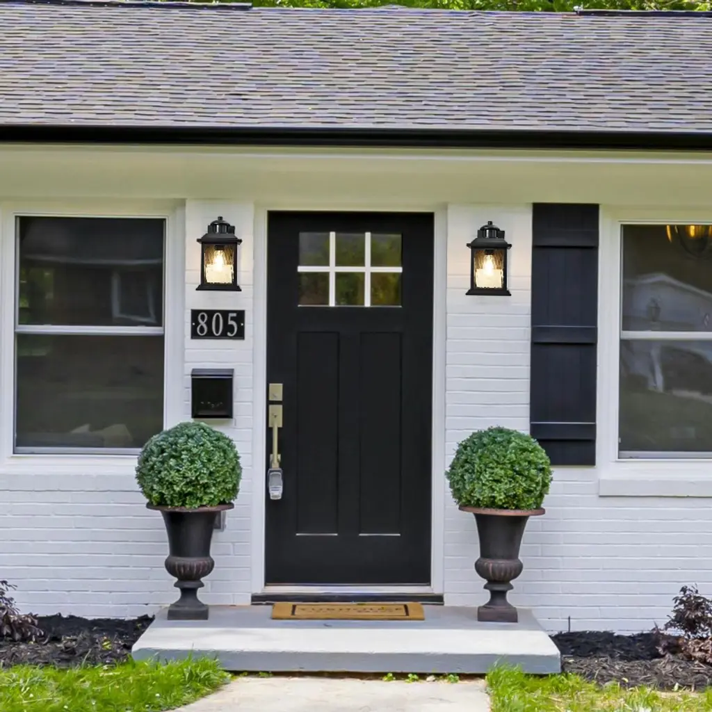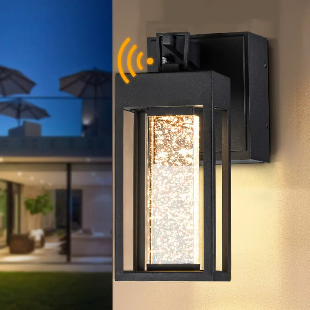 Upgrade your outdoor lighting with our advanced motion sensor and dusk to dawn sensor wall sconce, ensuring optimal convenience and safety.The fixture boasts a elegant design with a square water rippled glass lampshade that create a warm, inviting glow, making it perfect for various outdoor settings.The design is unique and never out of date, you can use it for front doors, garages, porches, patios, courtyards, gardens, and backyards.