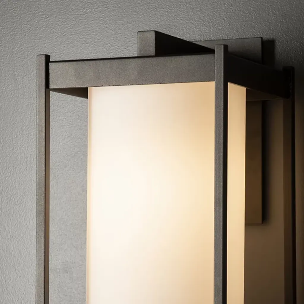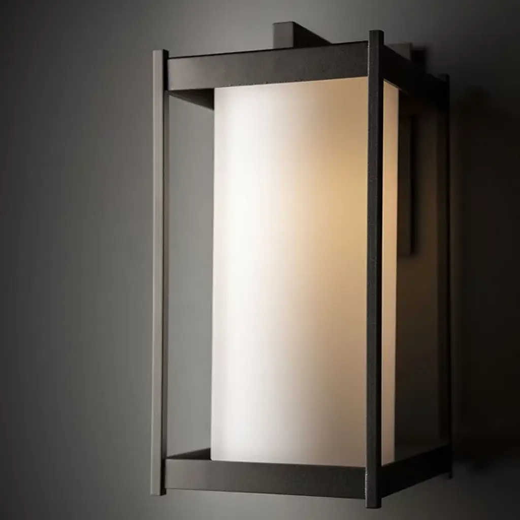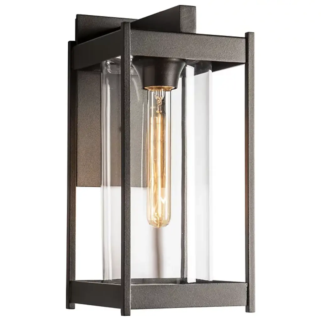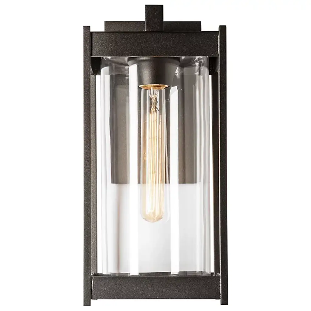 Time-honored lantern lighting, updated for modern exteriors. Designed by Paul Marr-Hilliard, the Cela Outdoor Wall Sconce by Hubbardton Forge showcases the archetypal vertical lines of a lantern as an open aluminum cage around the central cylindrical glass shade. The glass fully encircles and protects the bulb within from the elements, and it enables a bright wash of ambient light near an entryway, along a porch or on either side of a garage door.