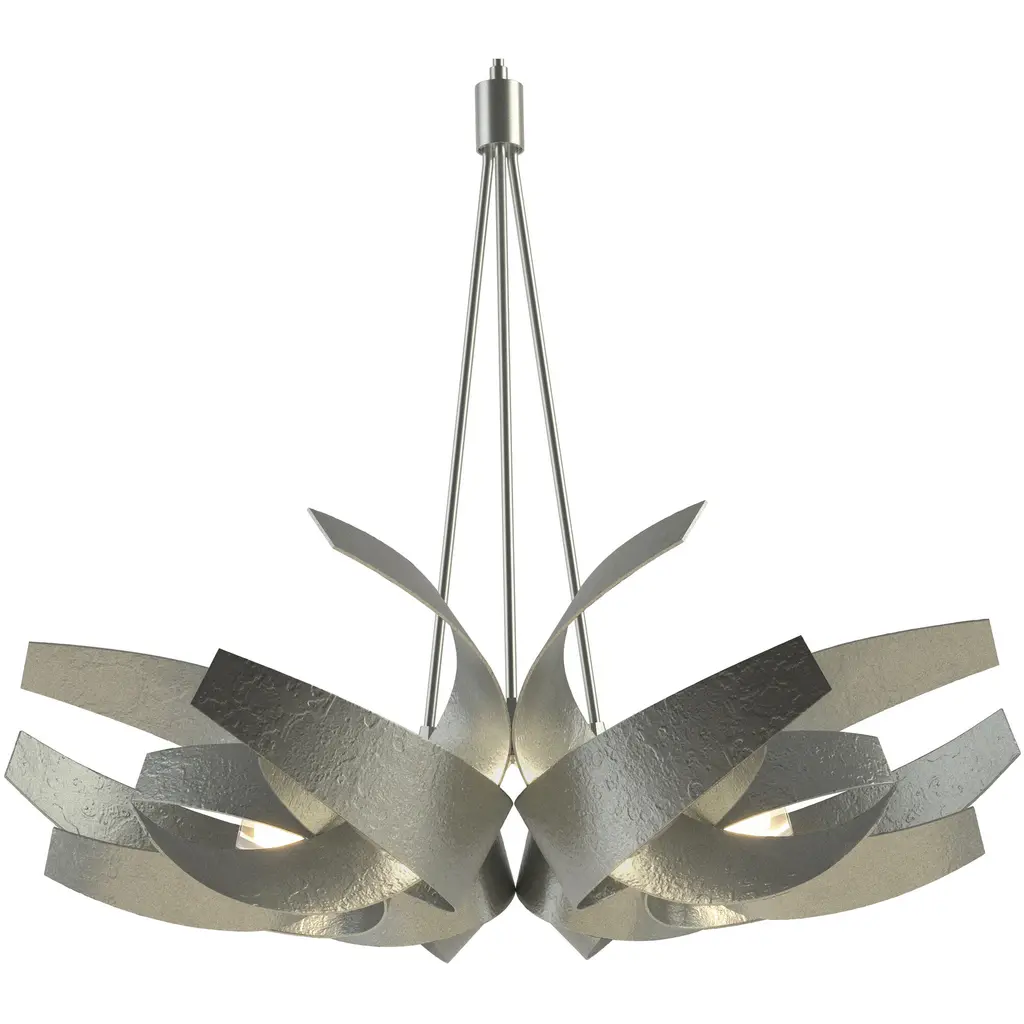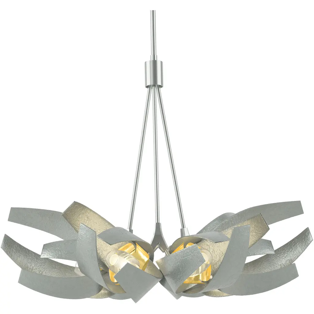 The Celeste wall light is a true luminous art object. Her light follows the beholder at every step, like a shining beacon. Made out of recycled and repurposed metal objects like food and paint cans, this wall light showcases a captivating shade composed of a silver and blue exterior and gold interior color. Celeste is entirely cut and assembled by hand, each object is a unique artisanal piece. It is delivered complete with a white simple twist wall fixture, cable, and warm-tone silver lightbulb.
