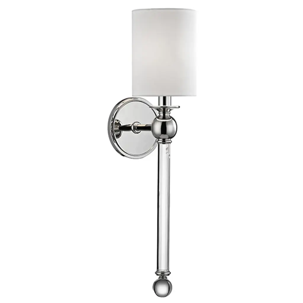Crisp, clean, and classic. The Celeste Wall Sconce by Quorum International will charm any interior décor with its versatile and elegant design. Supported by a circular backplate, a slender arm extends to hold cylindrical shades constructed from satin opal glass. Incandescent light bulbs within the shades send a soft light outward, while elongated stems add a touch of drama. This fixture is suitable for damp locations, making it a delightful addition to a bathroom or vanity area.