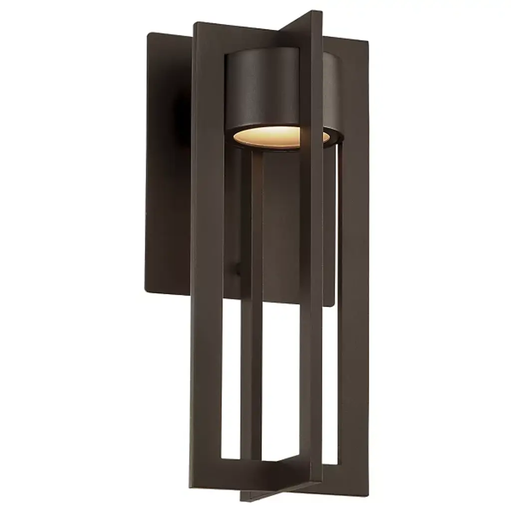 The Chamber Outdoor Wall Sconce by dweLED is a modern interpretation of the charming mid-century modern aesthetic, featuring perpendicular Die-cast Aluminum frames (in a refined Bronze finish) which house a low-profile LED light engine. The fixture’s open design and robust lighting blend well together, creating a dynamic visual display that shifts with your perspective.