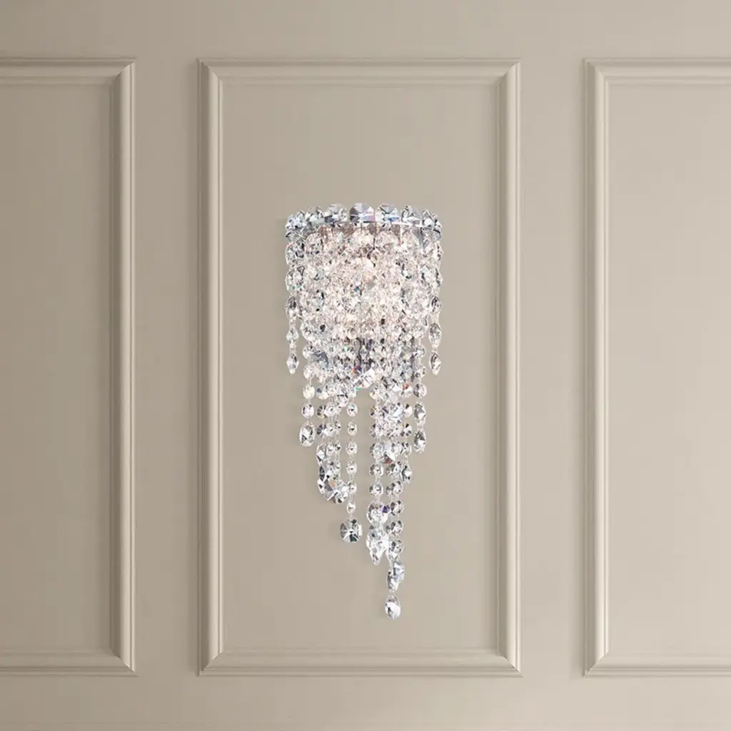 A dazzling symphony of crystal strands falling from a circular frame, as if punctuating the notes of a Romantic opus. Choose from a selection of more dramatic designs for a more majestic space or minimalist, compact versions for a discreet, yet splendid, statement.