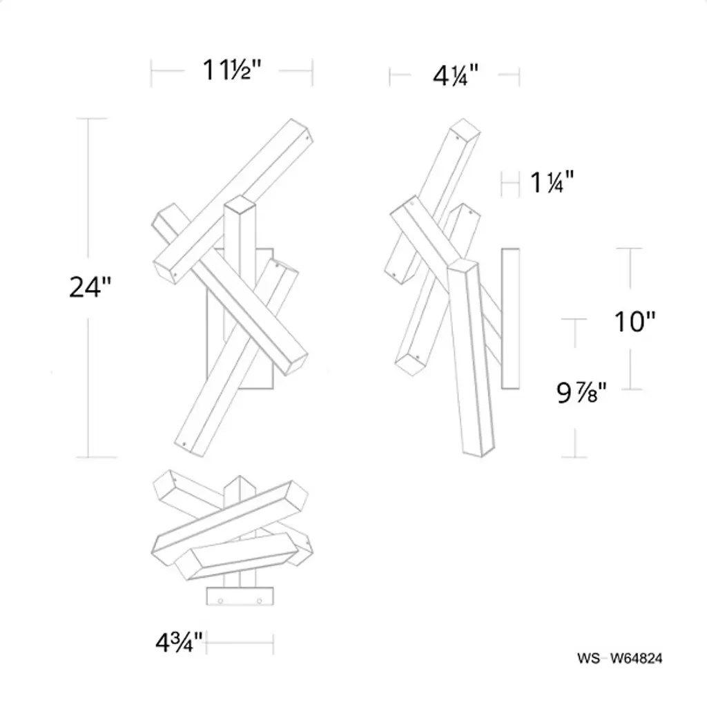 Add an abstract statement to your walls with the Chaos LED Wall Sconce by Modern Forms. Starting with a rectangular wall plate and driver, a series of rectangular prisms are held out angled across each other from a single anchor piece. Able to mount vertically or horizontally, Illumination is provided by integrated LEDs tucked into a single face of each prism, creating a multifaceted mix of direct, ambient and reflected light when viewed from any angle.
