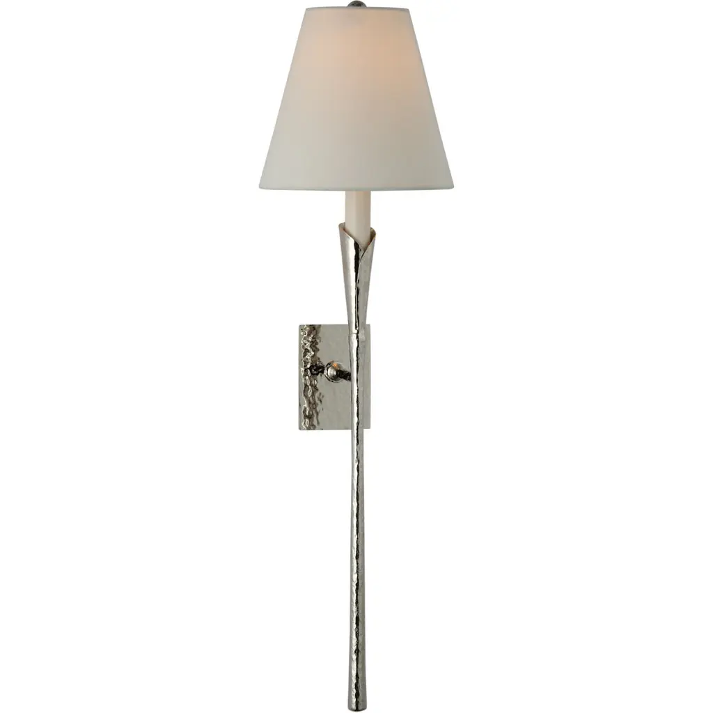 Aiden Large Tail Sconce in Aged Iron with Linen Shade